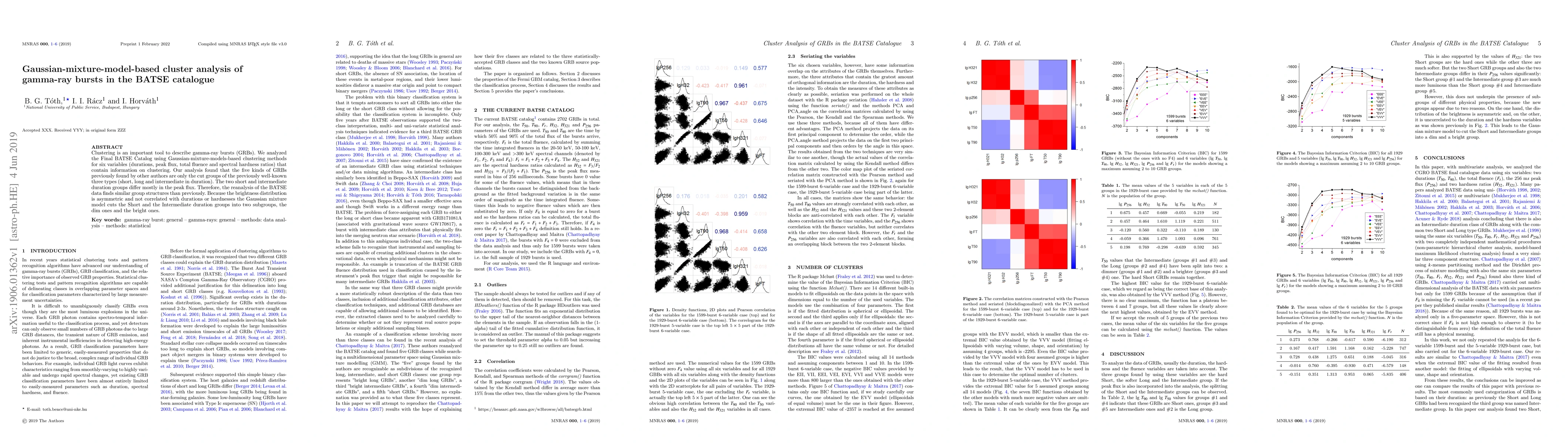 This paper uses Gaussian-mixture-model-based clustering to analyze gamma-ray bursts in the BATSE catalog, identifying three main types (short, long, and intermediate) with subgroups based on peak flux. The findings confirm previous categorizations while revealing additional brightness-based distinctions.
