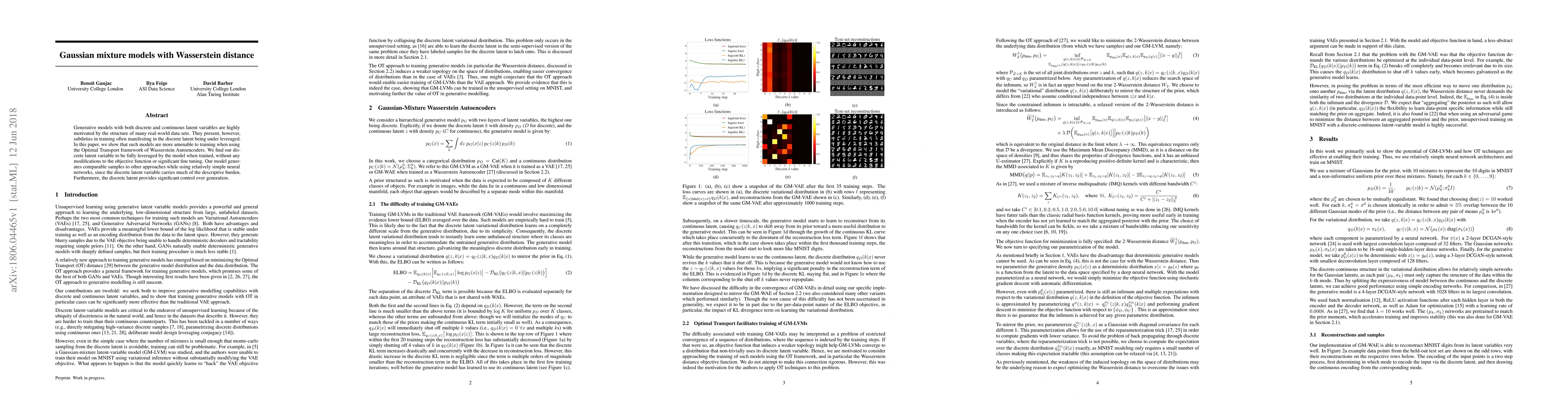 Researchers found that using Wasserstein Autoencoders with Gaussian mixture models enables more effective training of discrete latent variables, allowing for simpler neural networks and better control over generation. This approach generates comparable samples to other methods while leveraging the discrete latent variable.