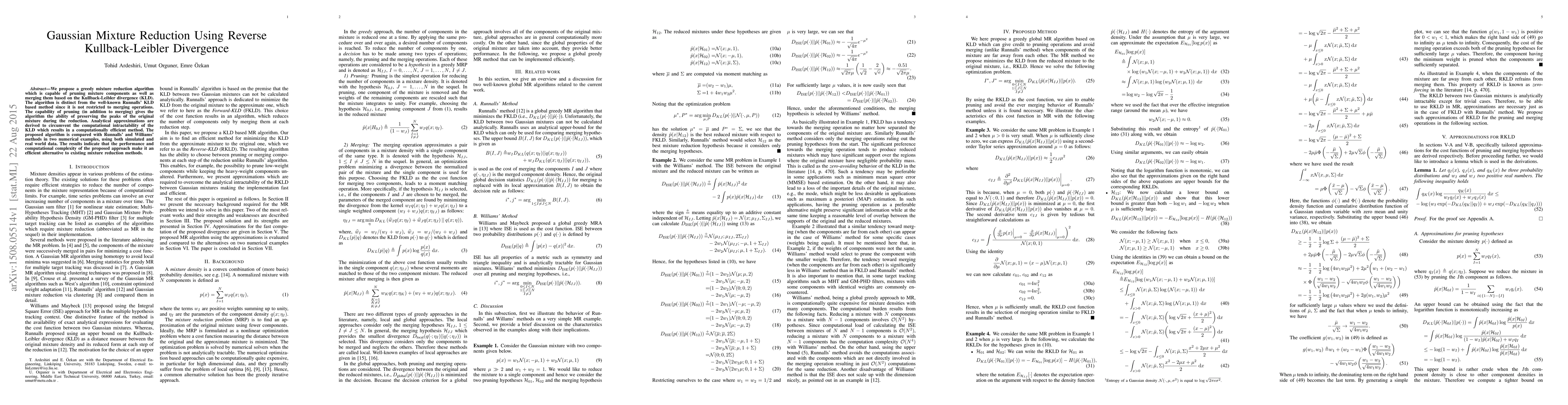 A new algorithm for reducing Gaussian mixtures efficiently uses reverse Kullback-Leibler divergence to prune and merge components, offering a computationally efficient alternative to existing methods.