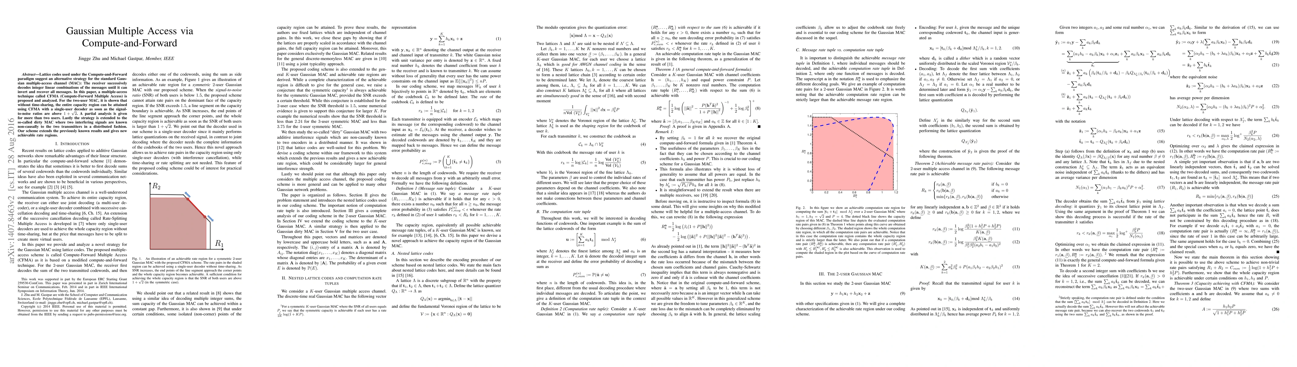 Lattice codes used under the Compute-and-Forward paradigm suggest an alternative strategy for the standard Gaussian multiple-access channel (MAC): The receiver successively decodes integer linear combinations of the messages until it can invert and recover all messages. In this paper, a multiple-access technique called CFMA (Compute-Forward Multiple Access) is proposed and analyzed. For the two-user MAC, it is shown that without time-sharing, the entire capacity region can be attained using CFMA with a single-user decoder as soon as the signal-to-noise ratios are above $1+\sqrt{2}$. A partial analysis is given for more than two users. Lastly the strategy is extended to the so-called dirty MAC where two interfering signals are known non-causally to the two transmitters in a distributed fashion. Our scheme extends the previously known results and gives new achievable rate regions.