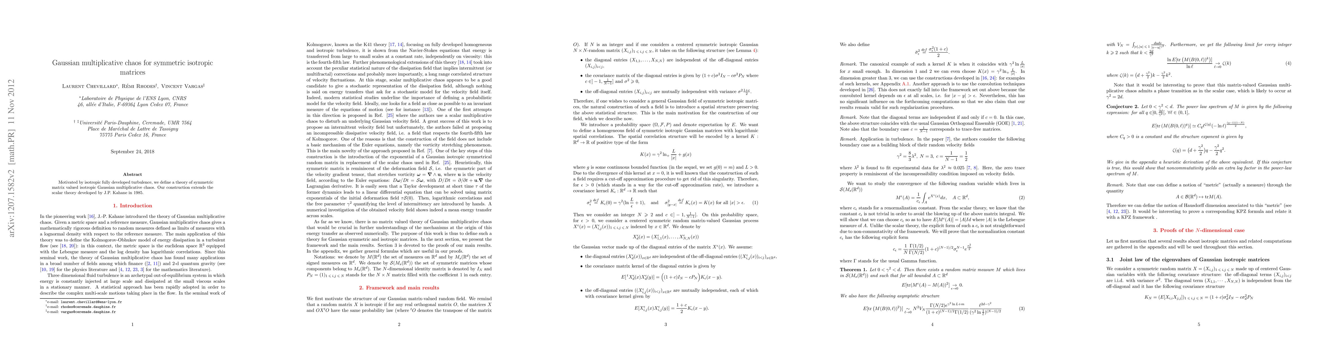 Researchers develop a theory for symmetric matrices that exhibit isotropic Gaussian multiplicative chaos, building on 1985 work by J.P. Kahane to study fully developed turbulence.