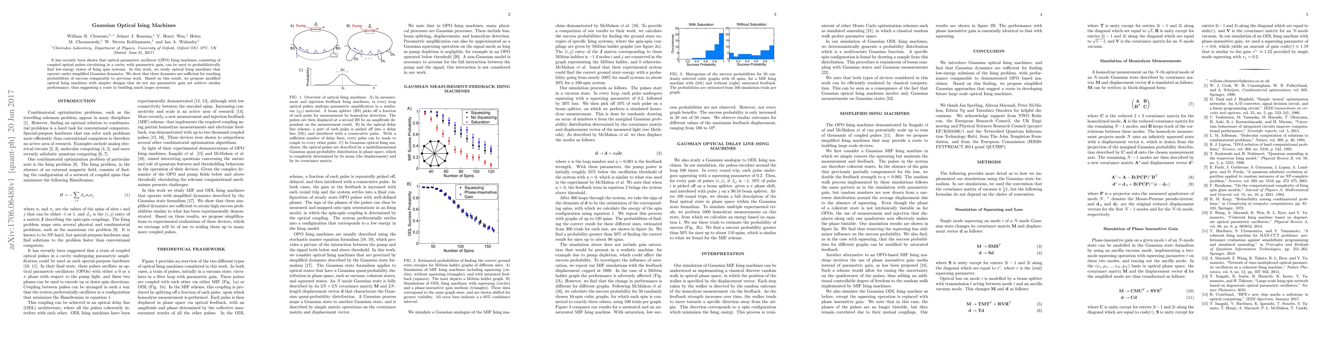 It has recently been shown that optical parametric oscillator (OPO) Ising machines, consisting of coupled optical pulses circulating in a cavity with parametric gain, can be used to probabilistically find low-energy states of Ising spin systems. In this work, we study optical Ising machines that operate under simplified Gaussian dynamics. We show that these dynamics are sufficient for reaching probabilities of success comparable to previous work. Based on this result, we propose modified optical Ising machines with simpler designs that do not use parametric gain yet achieve similar performance, thus suggesting a route to building much larger systems.