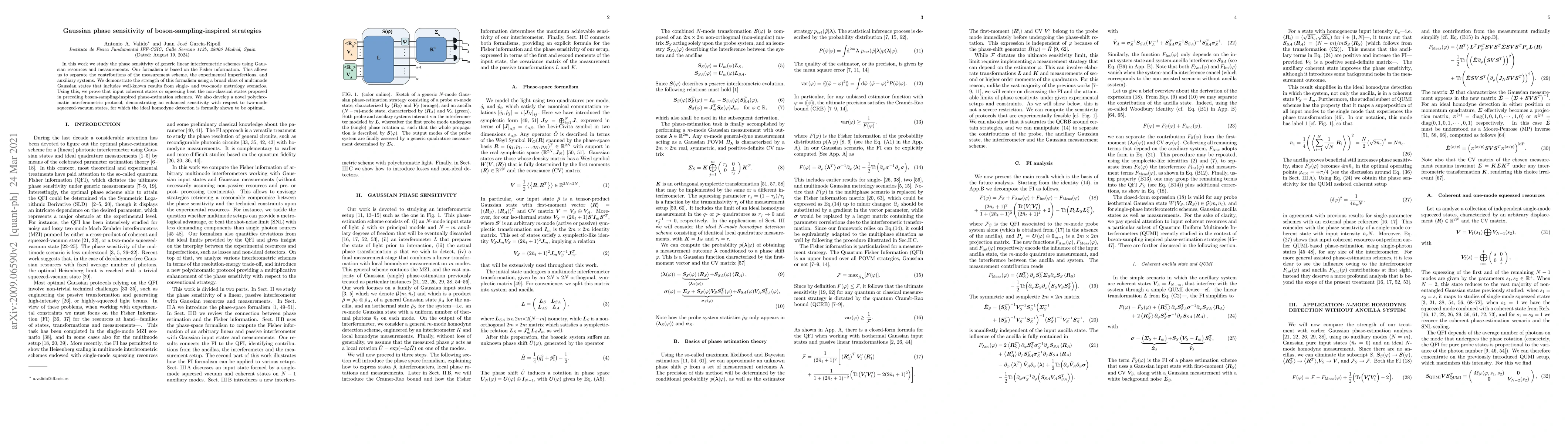 This paper investigates the phase sensitivity of linear interferometric schemes utilizing Gaussian resources, employing Fisher information to analyze contributions from measurement, imperfections, and auxiliary systems. It demonstrates that coherent states or squeezing outperform non-classical states in boson-sampling-inspired phase-estimation schemes, and introduces a novel polychromatic interferometric protocol with enhanced sensitivity.
