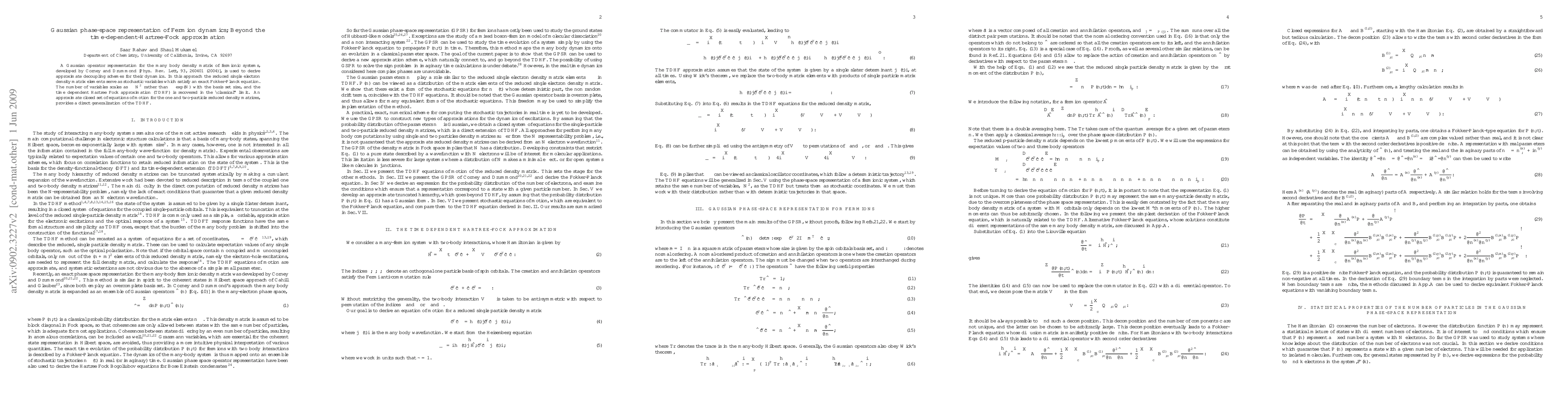 This paper develops a Gaussian operator representation for fermionic systems' many-body density matrix, leading to a new approximate decoupling scheme for their dynamics. This approach generalizes the time-dependent Hartree-Fock approximation and scales more favorably with system size.