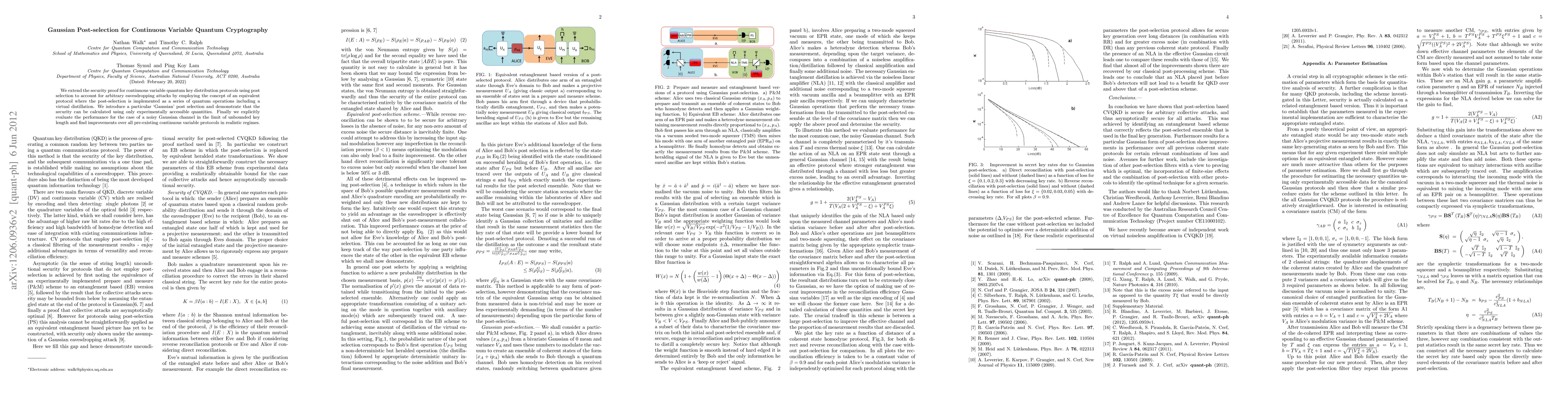 This paper extends the security proof for continuous variable quantum key distribution using Gaussian post-selection, showing that security can be calculated with experimentally accessible quantities. It demonstrates improved performance over existing protocols in realistic noisy Gaussian channel scenarios.