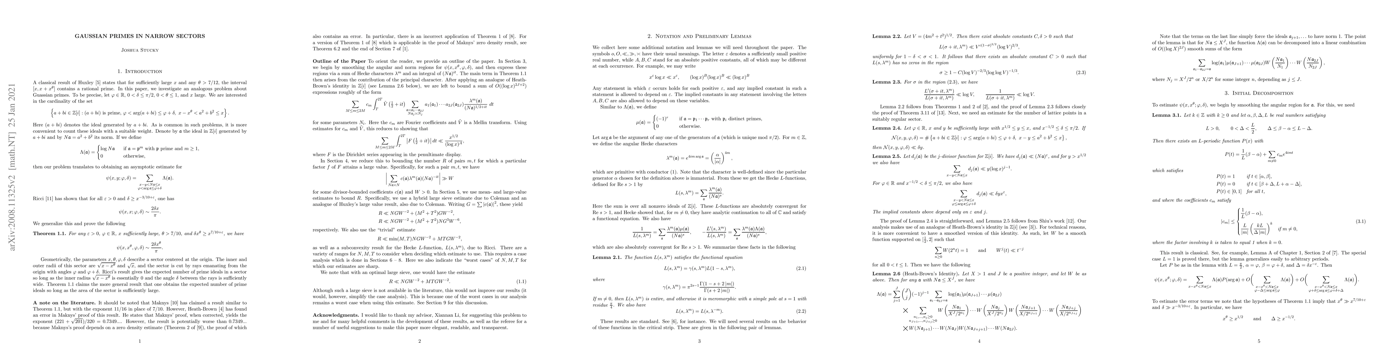 Summary: This paper extends Ricci's theorem to count Gaussian primes $\mathfrak{p}$ within specified intervals for both their norm and argument, providing a detailed analysis of prime distribution in narrow sectors.