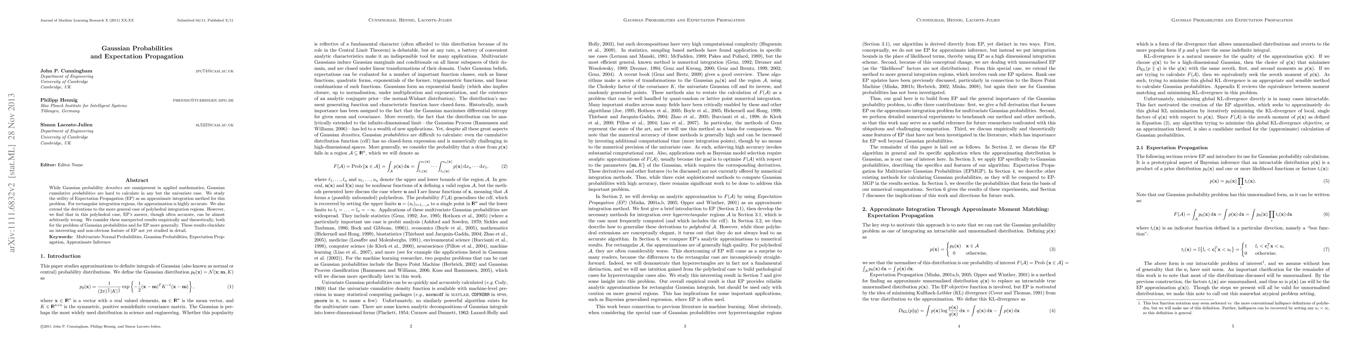 While Gaussian probability densities are omnipresent in applied mathematics, Gaussian cumulative probabilities are hard to calculate in any but the univariate case. We study the utility of Expectation Propagation (EP) as an approximate integration method for this problem. For rectangular integration regions, the approximation is highly accurate. We also extend the derivations to the more general case of polyhedral integration regions. However, we find that in this polyhedral case, EP's answer, though often accurate, can be almost arbitrarily wrong. We consider these unexpected results empirically and theoretically, both for the problem of Gaussian probabilities and for EP more generally. These results elucidate an interesting and non-obvious feature of EP not yet studied in detail.