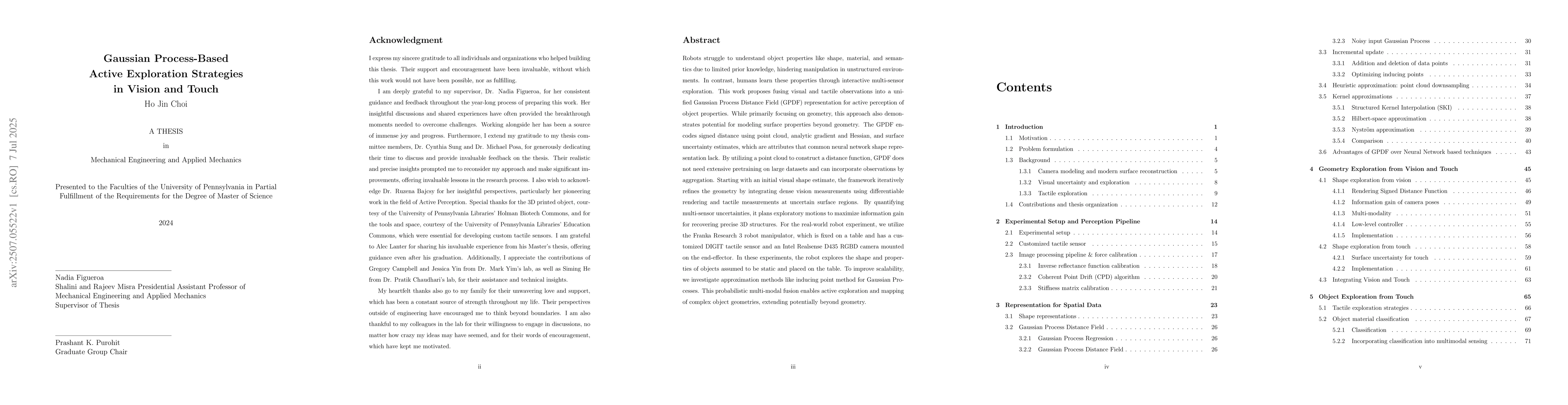 The research proposes a Gaussian Process Distance Field (GPDF) that fuses visual and tactile observations for active perception of object properties, enabling precise 3D structure recovery in unstructured environments.