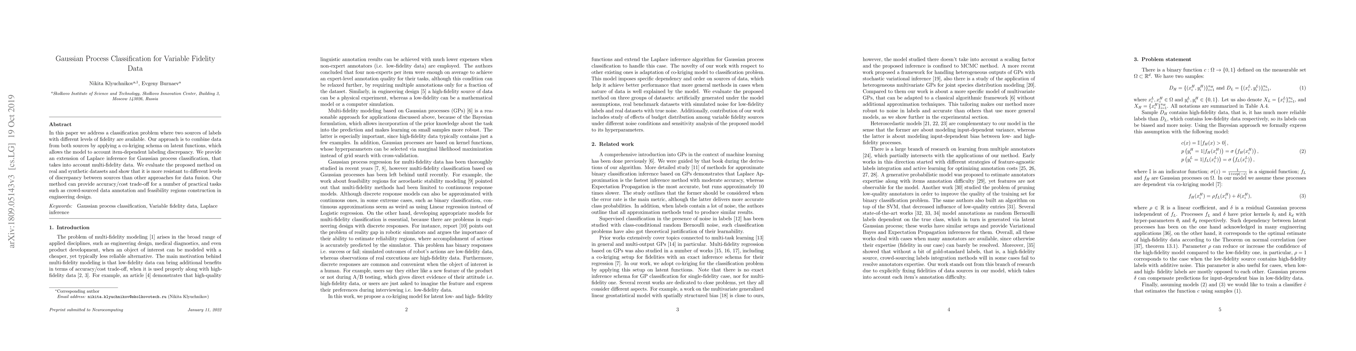 This paper proposes a method for combining data from two sources with different levels of fidelity to improve classification accuracy, offering a balance between cost and accuracy for practical tasks like crowd-sourced data annotation.