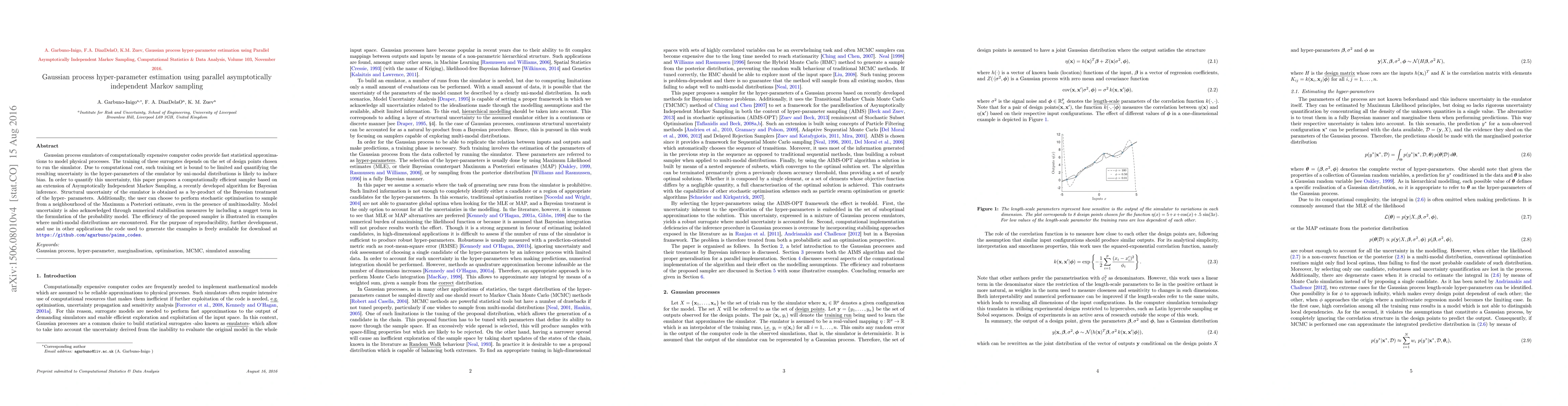 This paper introduces a computationally efficient sampler, an extension of Asymptotically Independent Markov Sampling, for quantifying uncertainty in Gaussian process hyper-parameters. It offers a method to handle multi-modal distributions and includes stabilization measures for model uncertainty, illustrated with examples available for download at a provided GitHub link.