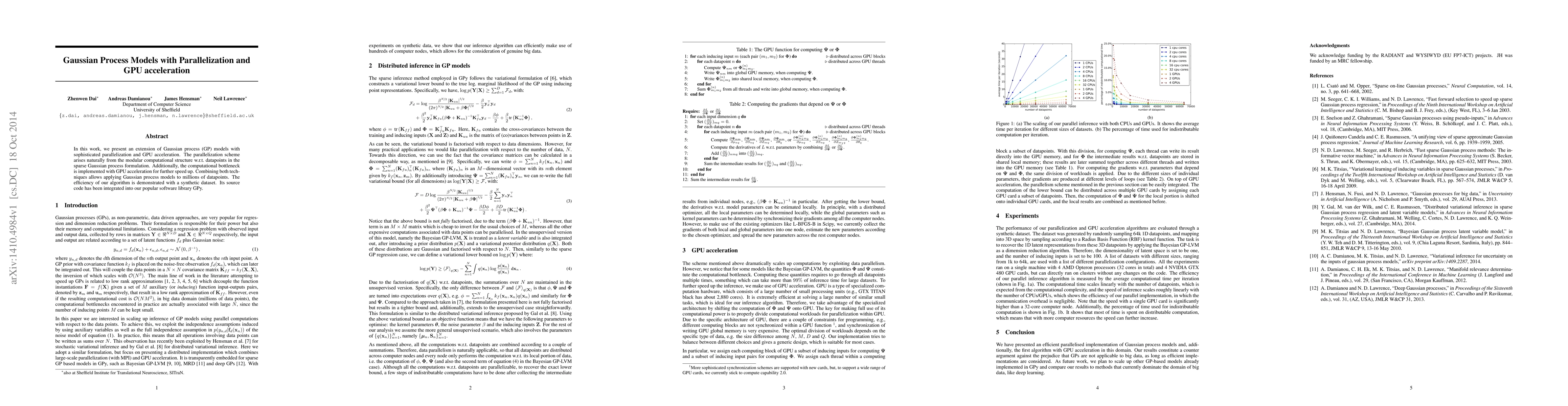 This paper introduces a parallelized and GPU-accelerated Gaussian process model, leveraging its modular structure for efficient computation and addressing the computational bottleneck to enable the application to large datasets. The method's efficiency is demonstrated using a synthetic dataset and is integrated into the GPy software library.