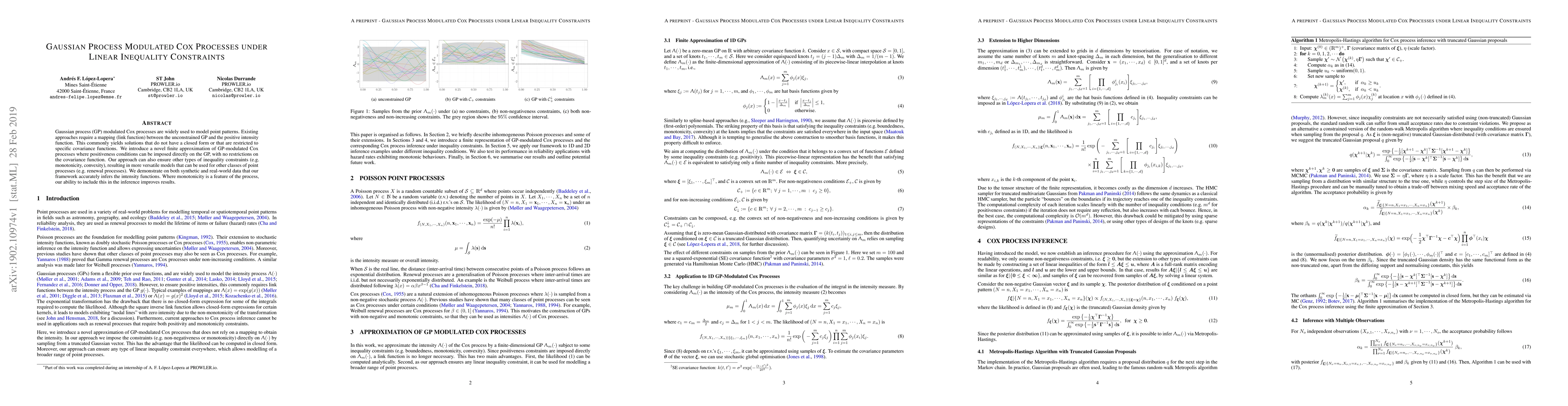 Gaussian process (GP) modulated Cox processes are widely used to model point patterns. Existing approaches require a mapping (link function) between the unconstrained GP and the positive intensity function. This commonly yields solutions that do not have a closed form or that are restricted to specific covariance functions. We introduce a novel finite approximation of GP-modulated Cox processes where positiveness conditions can be imposed directly on the GP, with no restrictions on the covariance function. Our approach can also ensure other types of inequality constraints (e.g. monotonicity, convexity), resulting in more versatile models that can be used for other classes of point processes (e.g. renewal processes). We demonstrate on both synthetic and real-world data that our framework accurately infers the intensity functions. Where monotonicity is a feature of the process, our ability to include this in the inference improves results.