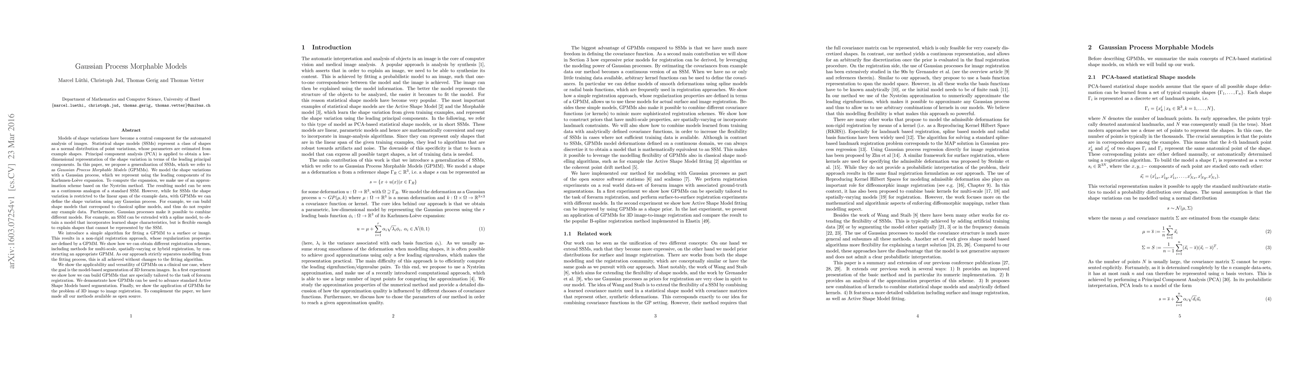 This paper proposes Gaussian Process Morphable Models (GPMMs) as a generalization of Statistical Shape Models (SSMs), using Gaussian processes to model shape variations. GPMMs allow for flexible shape modeling without requiring example data and can combine different models, demonstrating applicability in 3D forearm image segmentation.