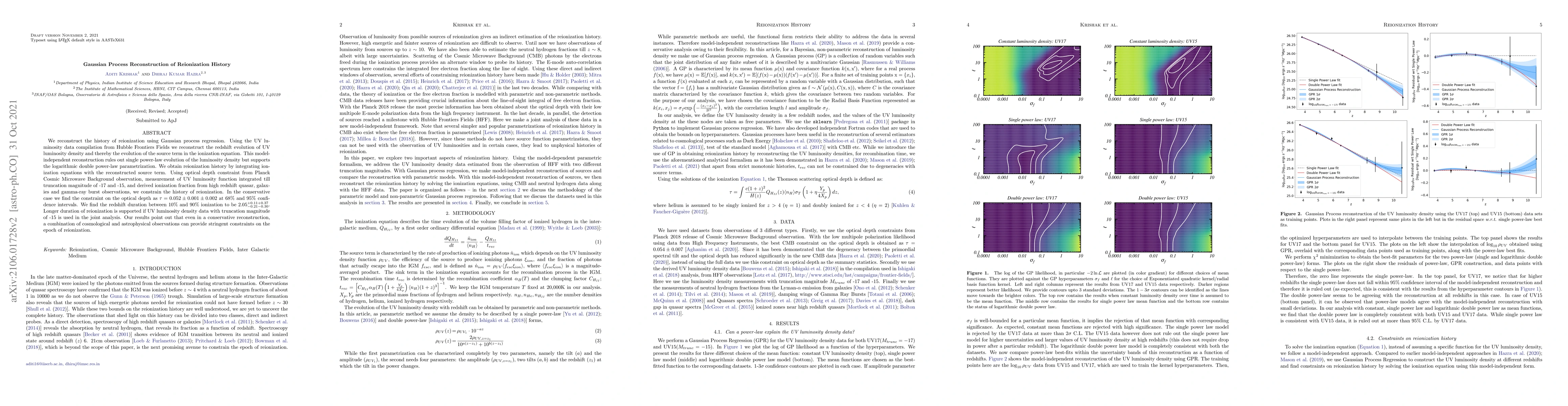 The application of Gaussian Process Regression as a model-independent method for reconstructing the evolution of UV luminosity density and subsequently the reionization history.