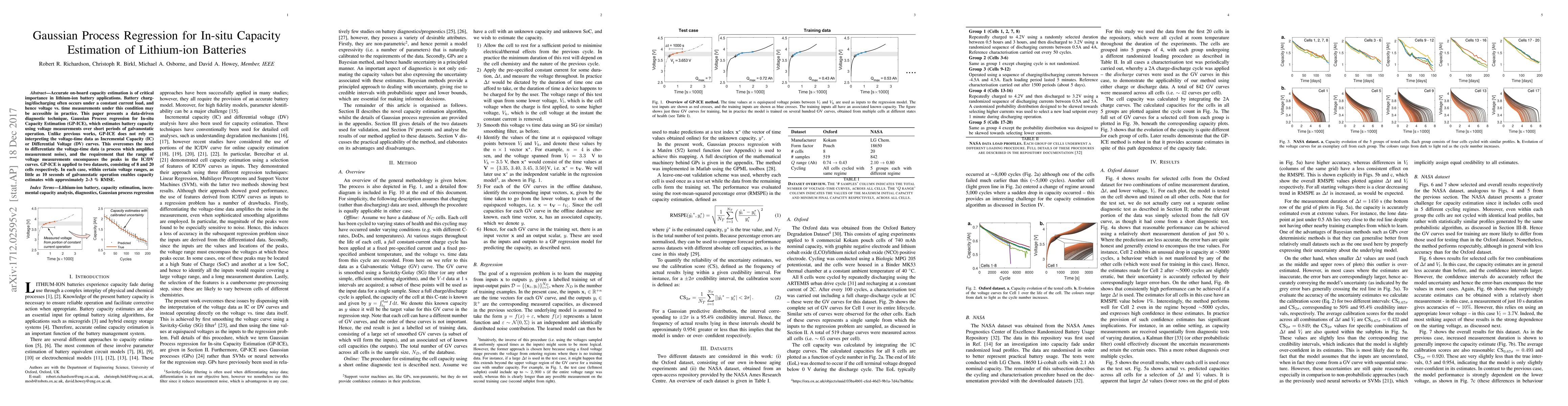 This paper introduces a Gaussian Process regression method for estimating the in-situ capacity of lithium-ion batteries using voltage measurements during galvanostatic operation, achieving accurate estimates with minimal data and without the need for differentiating noisy voltage data. The method, GP-ICE, demonstrates high accuracy with RMSE of 2-3% using only 10 seconds of data.