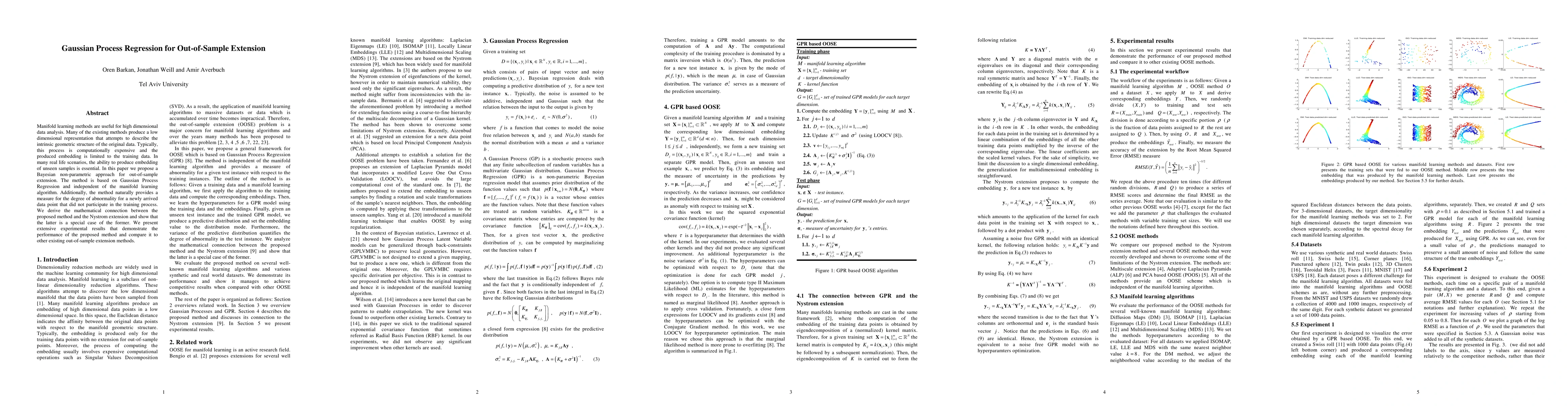 This paper proposes a Gaussian Process Regression-based Bayesian non-parametric approach for extending manifold learning methods to unseen data, offering a measure of abnormality for new samples and demonstrating its performance through experiments. The method is shown to generalize the Nystrom extension technique.