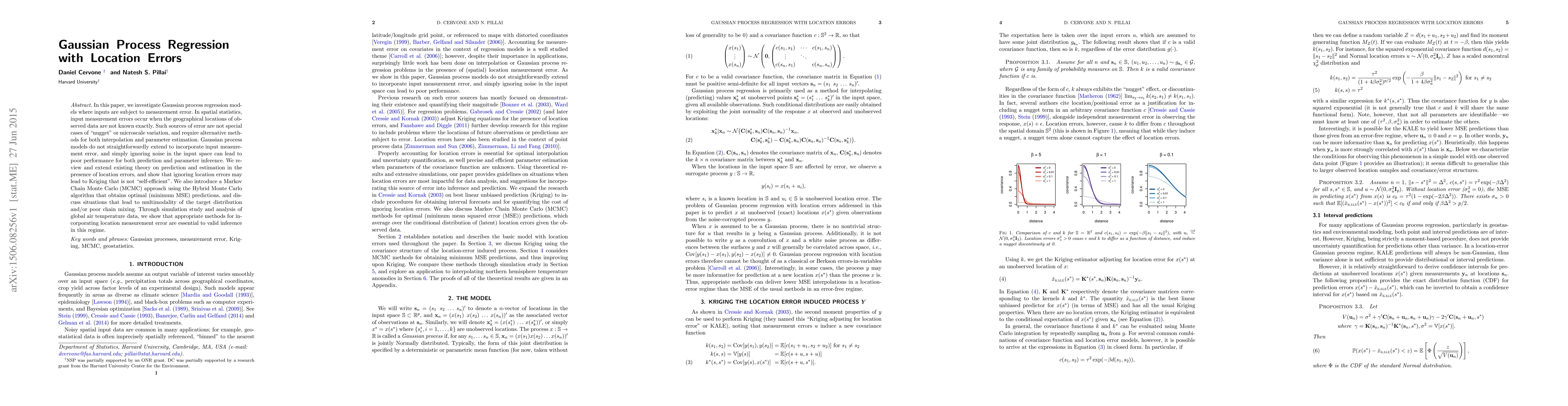 This paper explores Gaussian process regression models with input measurement errors, particularly location errors in spatial statistics, and proposes a Markov Chain Monte Carlo method using Hybrid Monte Carlo for optimal predictions. It highlights the importance of accounting for location errors to avoid poor performance and invalid inference.