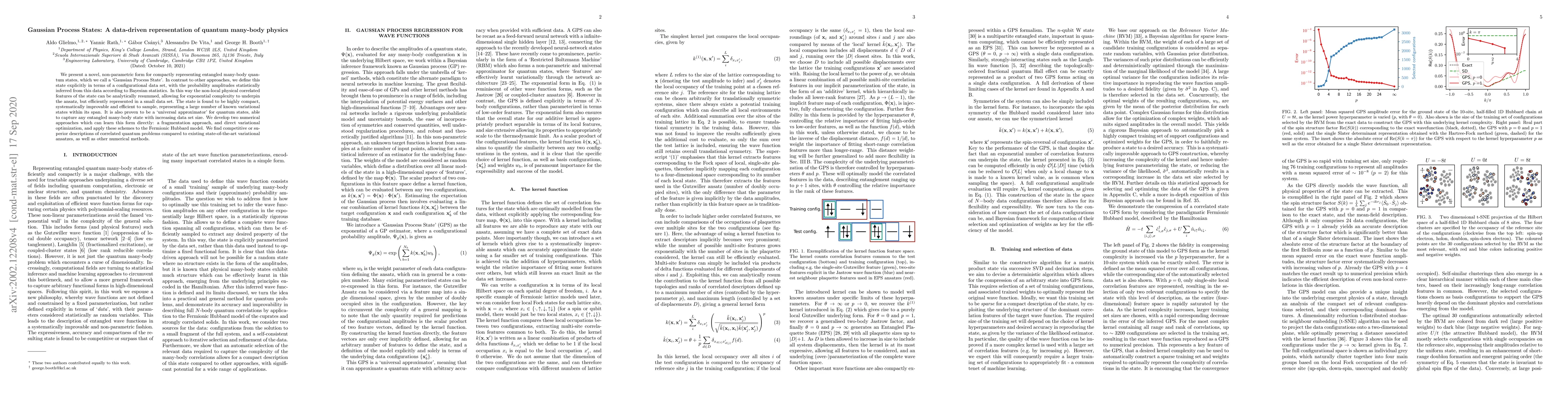 We present a novel, non-parametric form for compactly representing entangled many-body quantum states, which we call a `Gaussian Process State'. In contrast to other approaches, we define this state explicitly in terms of a configurational data set, with the probability amplitudes statistically inferred from this data according to Bayesian statistics. In this way the non-local physical correlated features of the state can be analytically resummed, allowing for exponential complexity to underpin the ansatz, but efficiently represented in a small data set. The state is found to be highly compact, systematically improvable and efficient to sample, representing a large number of known variational states within its span. It is also proven to be a `universal approximator' for quantum states, able to capture any entangled many-body state with increasing data set size. We develop two numerical approaches which can learn this form directly: a fragmentation approach, and direct variational optimization, and apply these schemes to the Fermionic Hubbard model. We find competitive or superior descriptions of correlated quantum problems compared to existing state-of-the-art variational ansatzes, as well as other numerical methods.