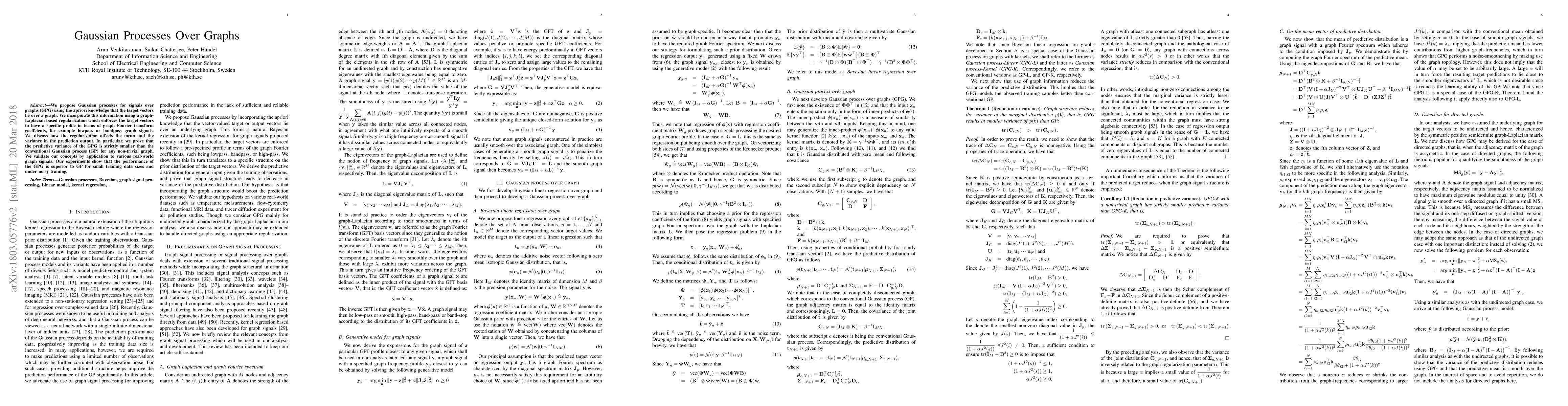 We propose Gaussian processes for signals over graphs (GPG) using the apriori knowledge that the target vectors lie over a graph. We incorporate this information using a graph- Laplacian based regularization which enforces the target vectors to have a specific profile in terms of graph Fourier transform coeffcients, for example lowpass or bandpass graph signals. We discuss how the regularization affects the mean and the variance in the prediction output. In particular, we prove that the predictive variance of the GPG is strictly smaller than the conventional Gaussian process (GP) for any non-trivial graph. We validate our concepts by application to various real-world graph signals. Our experiments show that the performance of the GPG is superior to GP for small training data sizes and under noisy training.