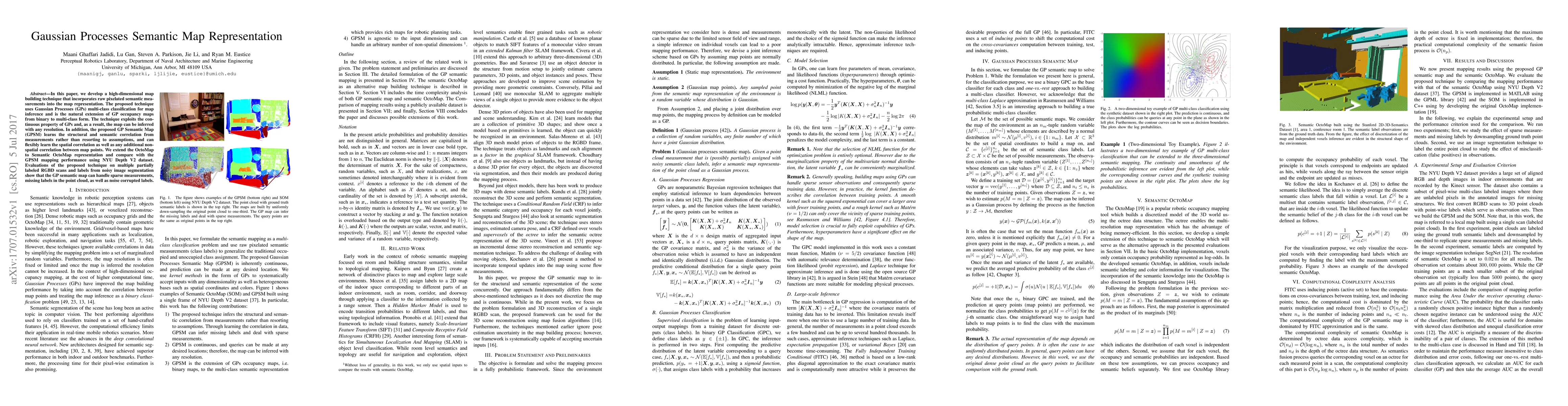 This research introduces Gaussian Processes Semantic Map (GPSM), an advanced technique for high-dimensional map building that incorporates raw pixelated semantic measurements. GPSM, an extension of GP occupancy maps, uses Gaussian Processes for multi-class classification, enabling flexible resolution inference and learning of both spatial and non-spatial correlations. Evaluations demonstrate its robustness in handling sparse data, missing labels, and noisy labels, outperforming Semantic OctoMap representation in various scenarios.