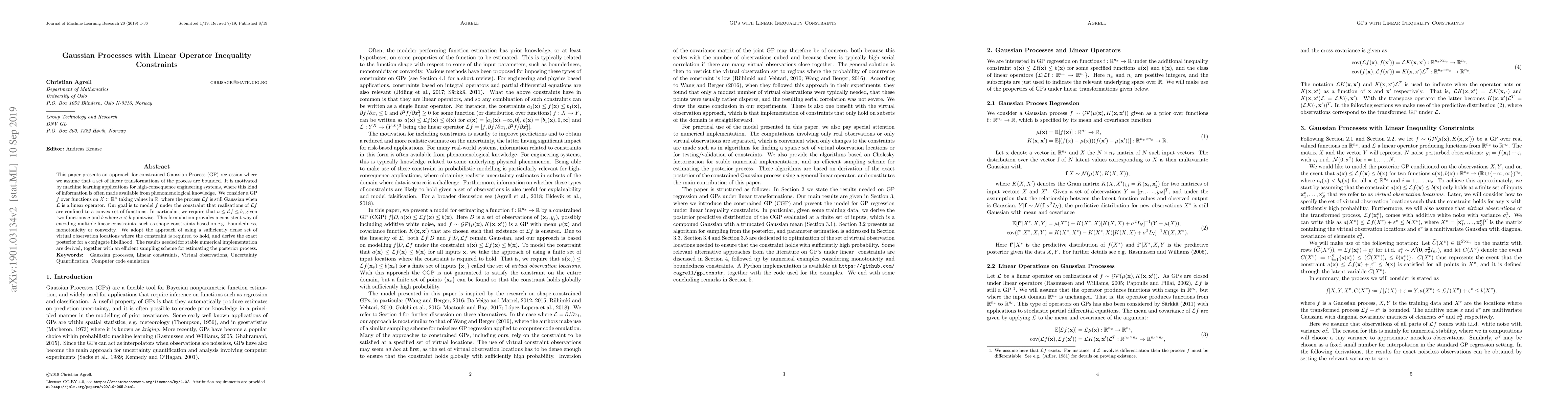 This paper presents a method for constrained Gaussian Process regression where linear operator inequalities are applied to model functions within a bounded convex set, enabling the encoding of multiple constraints in a consistent manner.