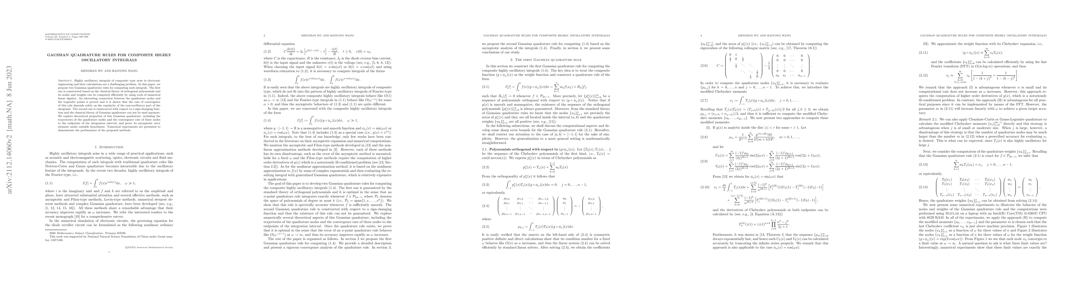 The paper proposes two Gaussian quadrature rules for computing composite highly oscillatory integrals, utilizing classical orthogonal polynomial theory and numerical linear algebra tools for efficient node and weight computation.