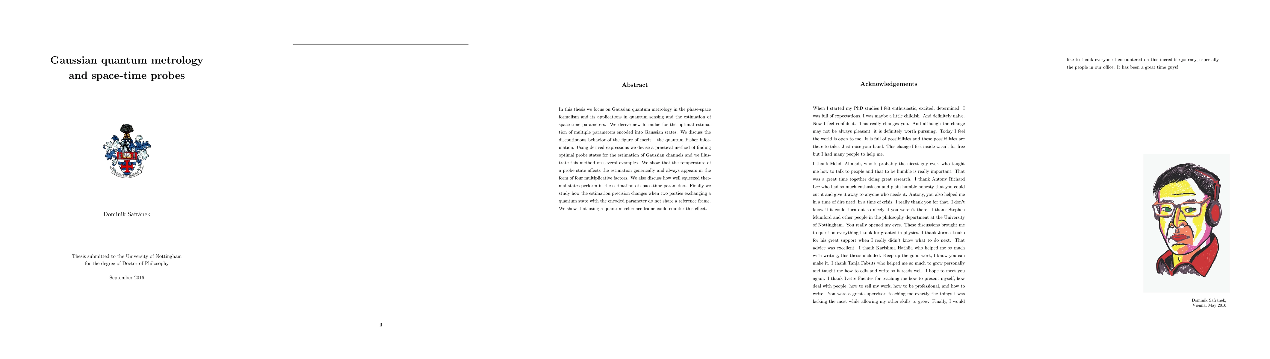 In this thesis we focus on Gaussian quantum metrology in the phase-space formalism and its applications in quantum sensing and the estimation of space-time parameters. We derive new formulae for the optimal estimation of multiple parameters encoded into Gaussian states. We discuss the discontinuous behavior of the figure of merit - the quantum Fisher information. Using derived expressions we devise a practical method of finding optimal probe states for the estimation of Gaussian channels and we illustrate this method on several examples. We show that the temperature of a probe state affects the estimation generically and always appears in the form of four multiplicative factors. We also discuss how well squeezed thermal states perform in the estimation of space-time parameters. Finally we study how the estimation precision changes when two parties exchanging a quantum state with the encoded parameter do not share a reference frame. We show that using a quantum reference frame could counter this effect.