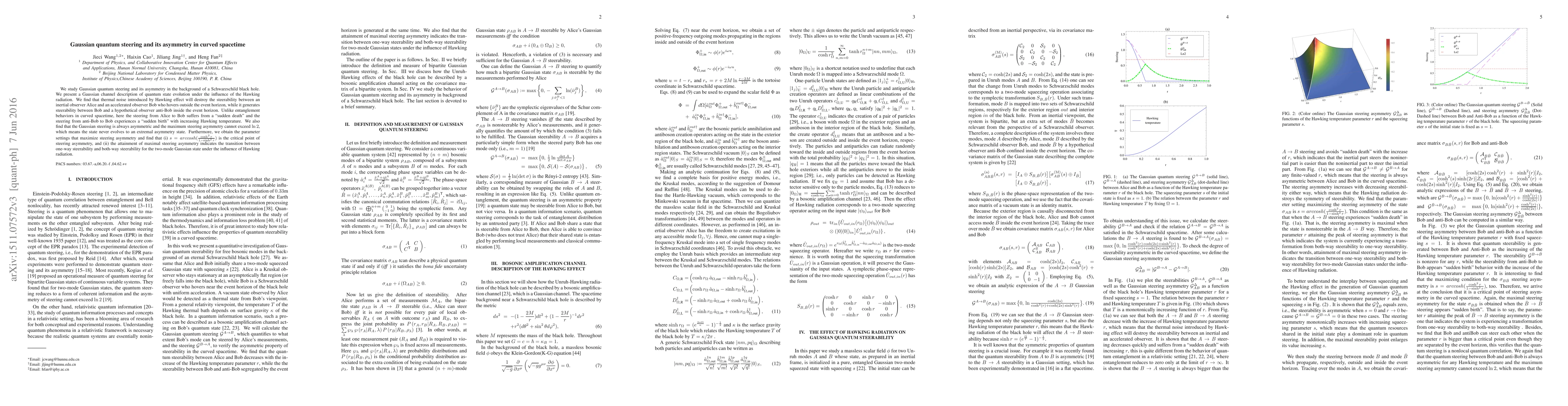 We study Gaussian quantum steering and its asymmetry in the background of a Schwarzschild black hole. We present a Gaussian channel description of quantum state evolution under the influence of the Hawking radiation. We find that thermal noise introduced by Hawking effect will destroy the steerability between an inertial observer Alice and an accelerated observer Bob who hovers outside the event horizon, while it generates steerability between Bob and a hypothetical observer anti-Bob inside the event horizon. Unlike entanglement behaviors in curved spacetime, here the steering from Alice to Bob suffers from a "sudden death" and the steering from anti-Bob to Bob experiences a "sudden birth" with increasing Hawking temperature. We also find that the Gaussian steering is always asymmetric and the maximum steering asymmetry cannot exceed $\ln 2$, which means the state never evolves to an extremal asymmetry state. Furthermore, we obtain the parameter settings that maximize steering asymmetry and find that (i) $s=arccosh(\frac{\cosh^2 r}{1-\sinh^2r})$ is the critical point of steering asymmetry, and (ii) the attainment of maximal steering asymmetry indicates the transition between one-way steerability and both-way steerability for the two-mode Gaussian state under the influence of Hawking radiation.
