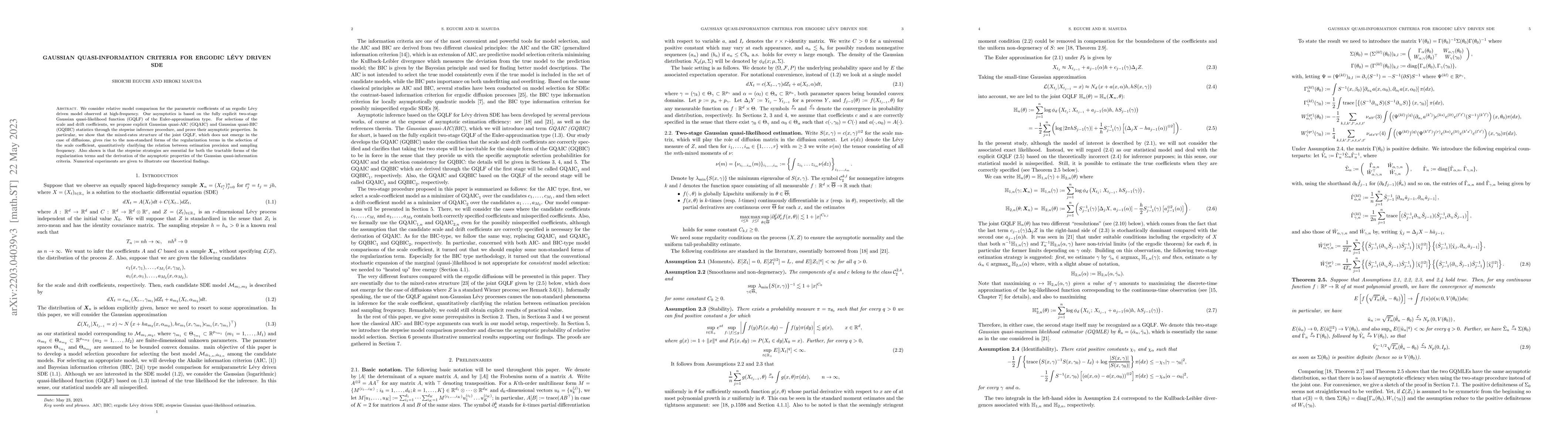 This paper proposes Gaussian quasi-information criteria (GQAIC and GQBIC) for model comparison in semiparametric ergodic Lévy-driven stochastic differential equations observed at high frequency. It introduces a two-stage Gaussian quasi-likelihood function and demonstrates the non-standard regularization terms arising from the mixed-rates structure, providing a quantitative relation between estimation precision and sampling frequency.
