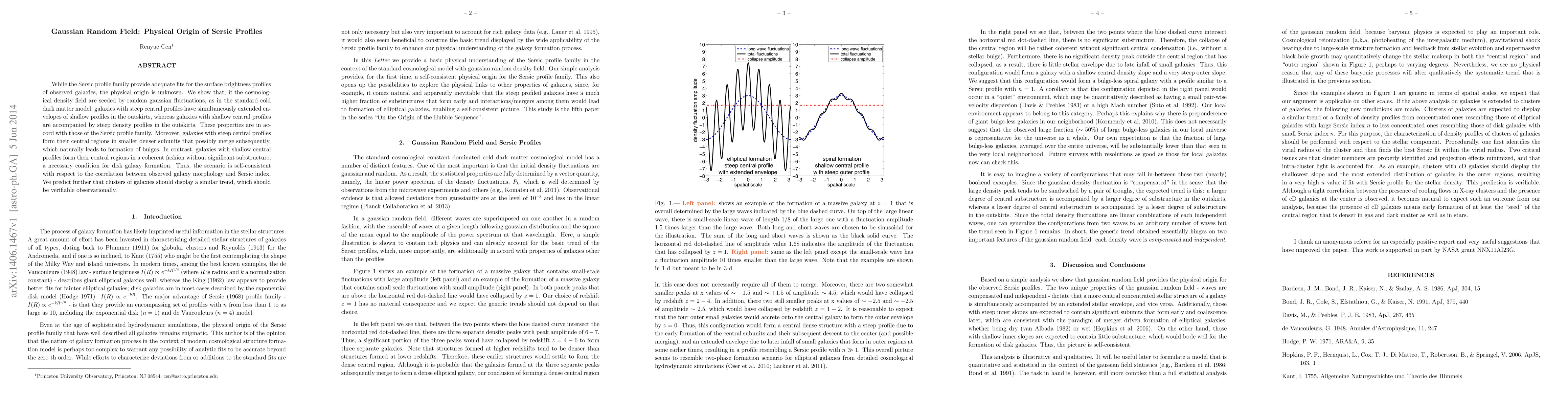 While the Sersic profile family provide adequate fits for the surface brightness profiles of observed galaxies, the physical origin is unknown. We show that, if the cosmological density field are seeded by random gaussian fluctuations, as in the standard cold dark matter model, galaxies with steep central profiles have simultaneously extended envelopes of shallow profiles in the outskirts, whereas galaxies with shallow central profiles are accompanied by steep density profiles in the outskirts. These properties are in accord with those of the Sersic profile family. Moreover, galaxies with steep central profiles form their central regions in smaller denser subunits that possibly merge subsequently, which naturally leads to formation of bulges. In contrast, galaxies with shallow central profiles form their central regions in a coherent fashion without significant substructure, a necessary condition for disk galaxy formation. Thus, the scenario is self-consistent with respect to the correlation between observed galaxy morphology and Sersic index. We predict further that clusters of galaxies should display a similar trend, which should be verifiable observationally.