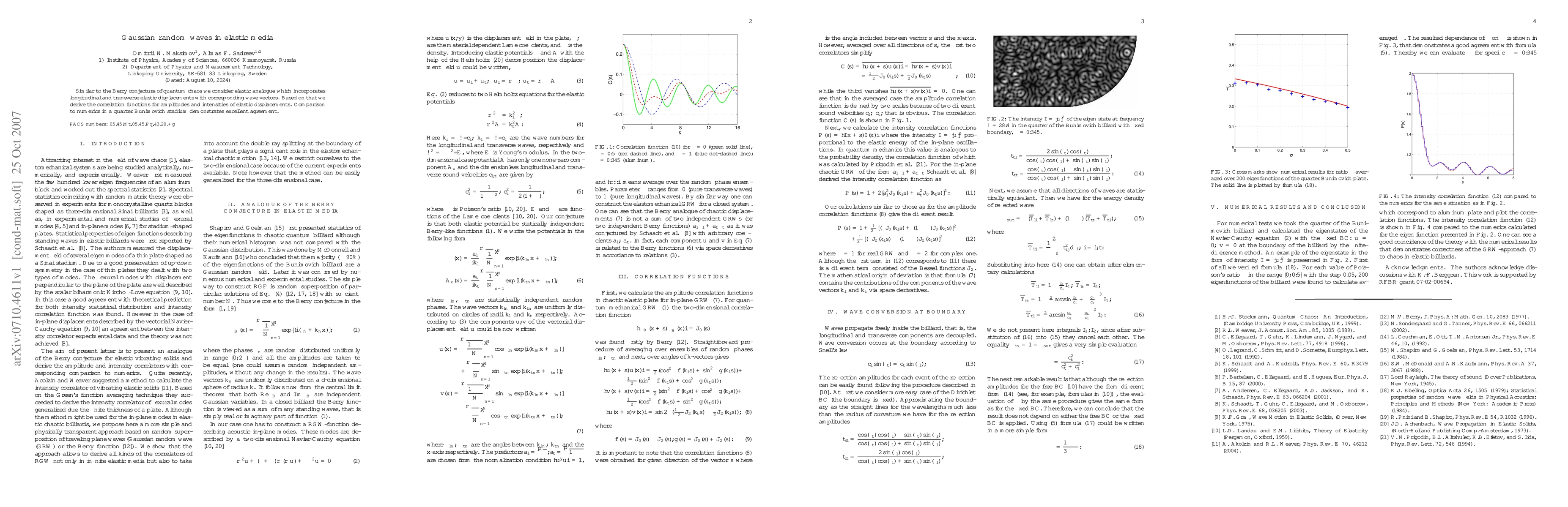 Similar to the Berry conjecture of quantum chaos we consider elastic analogue which incorporates longitudinal and transverse elastic displacements with corresponding wave vectors. Based on that we derive the correlation functions for amplitudes and intensities of elastic displacements. Comparison to numerics in a quarter Bunimovich stadium demonstrates excellent agreement.