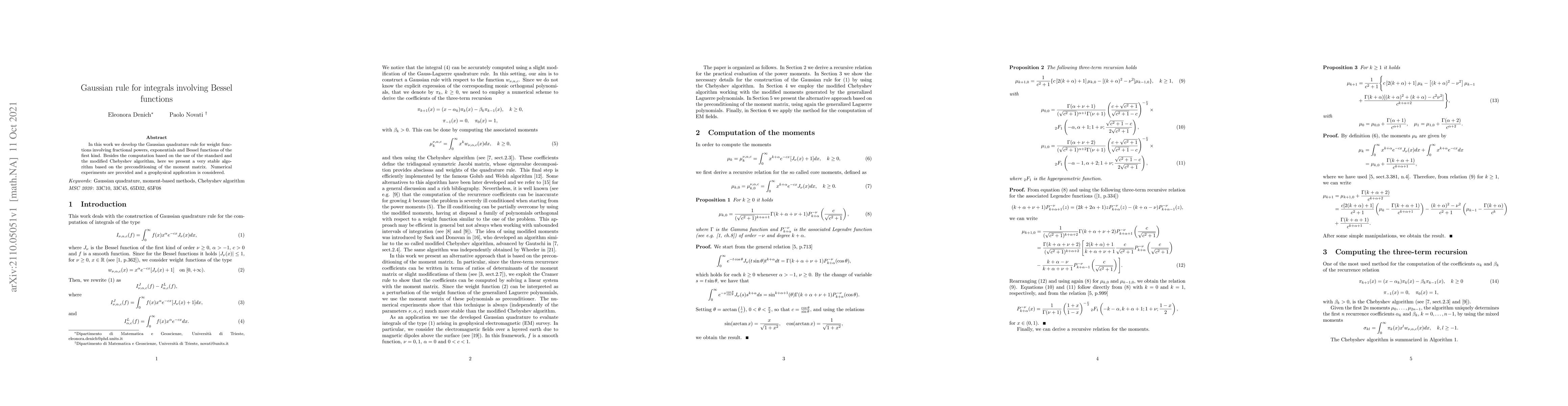 This paper develops a Gaussian quadrature rule for integrals involving Bessel functions, providing a stable algorithm based on preconditioning the moment matrix, with applications in geophysical modeling.