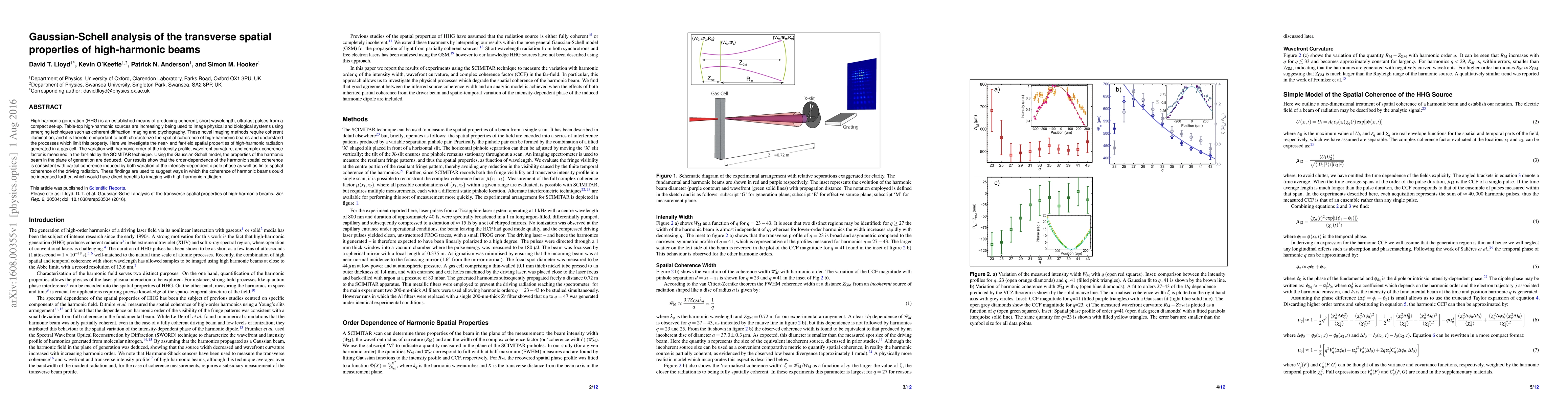 This paper investigates the spatial coherence properties of high-harmonic beams generated in a gas cell, using the SCIMITAR technique and Gaussian-Schell model analysis. Findings suggest that coherence is partially due to intensity-dependent dipole phase variation and the spatial coherence of the driving radiation, with implications for enhancing coherence for improved high-harmonic imaging.