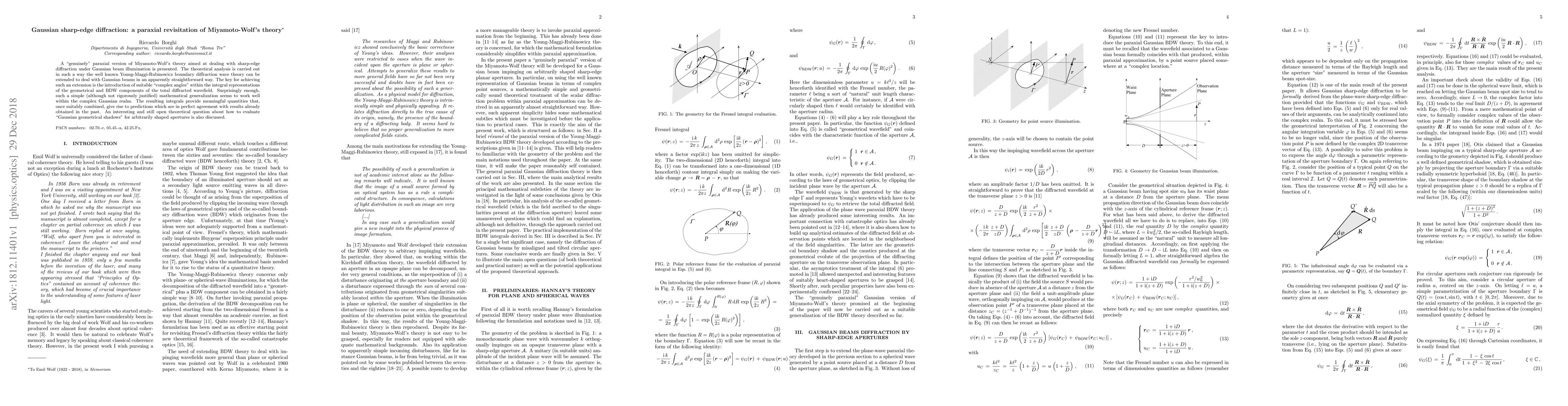 A "genuinely" paraxial version of Miyamoto-Wolf's theory aimed at dealing with sharp-edge diffraction under Gaussian beam illumination is presented. The theoretical analysis is carried out in such a way the well known Young-Maggi-Rubinowicz boundary diffraction wave theory can be extended to deal with Gaussian beams in an apparently straightforward way. The key for achieving such an extension is the introduction of suitable "complex angles" within the integral representations of the geometrical and BDW components of the total diffracted wavefield. Surprisingly enough, such a simple (although not rigorously justified) mathematical generalization seems to work well within the complex Gaussian realm. The resulting integrals provide meaningful quantities that, once suitably combined, give rise to predictions which are in perfect agreement with results already obtained in the past. An interesting and still open theoretical question about how to evaluate "Gaussian geometrical shadows" for arbitrarily shaped apertures is also discussed.