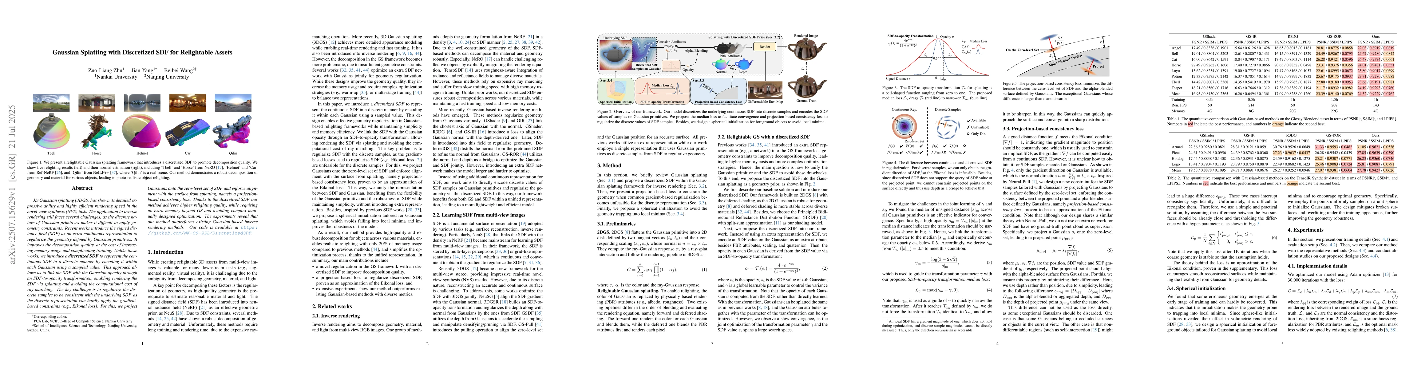 3D Gaussian splatting (3DGS) has shown its detailed expressive ability and highly efficient rendering speed in the novel view synthesis (NVS) task. The application to inverse rendering still faces several challenges, as the discrete nature of Gaussian primitives makes it difficult to apply geometry constraints. Recent works introduce the signed distance field (SDF) as an extra continuous representation to regularize the geometry defined by Gaussian primitives. It improves the decomposition quality, at the cost of increasing memory usage and complicating training. Unlike these works, we introduce a discretized SDF to represent the continuous SDF in a discrete manner by encoding it within each Gaussian using a sampled value. This approach allows us to link the SDF with the Gaussian opacity through an SDF-to-opacity transformation, enabling rendering the SDF via splatting and avoiding the computational cost of ray marching.The key challenge is to regularize the discrete samples to be consistent with the underlying SDF, as the discrete representation can hardly apply the gradient-based constraints (\eg Eikonal loss). For this, we project Gaussians onto the zero-level set of SDF and enforce alignment with the surface from splatting, namely a projection-based consistency loss. Thanks to the discretized SDF, our method achieves higher relighting quality, while requiring no extra memory beyond GS and avoiding complex manually designed optimization. The experiments reveal that our method outperforms existing Gaussian-based inverse rendering methods. Our code is available at https://github.com/NK-CS-ZZL/DiscretizedSDF.