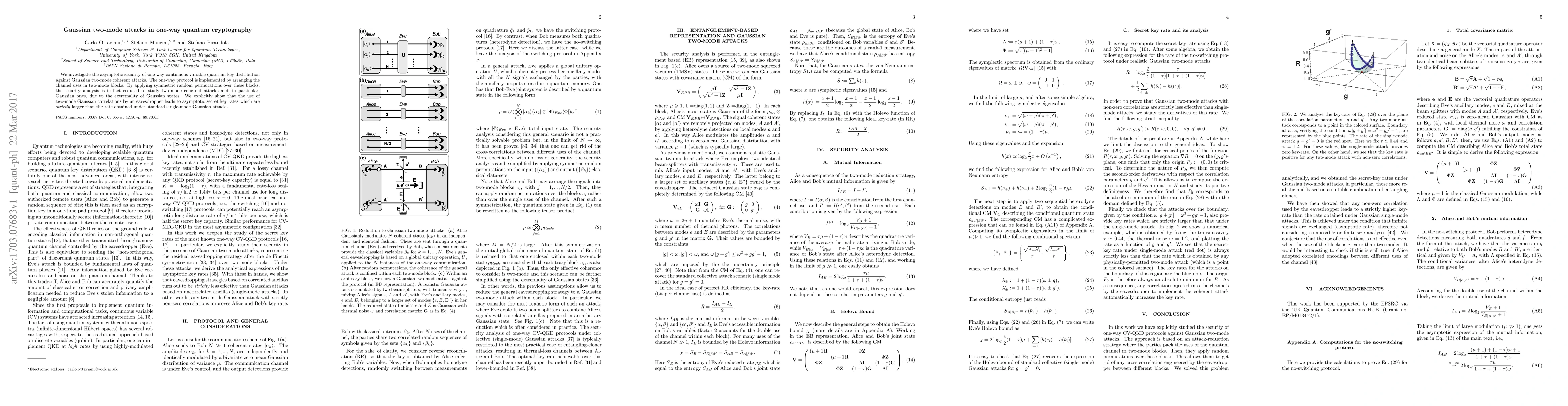This paper explores the asymptotic security of one-way continuous variable quantum key distribution against Gaussian two-mode coherent attacks, demonstrating that employing two-mode Gaussian correlations results in higher secret key rates compared to single-mode Gaussian attacks.