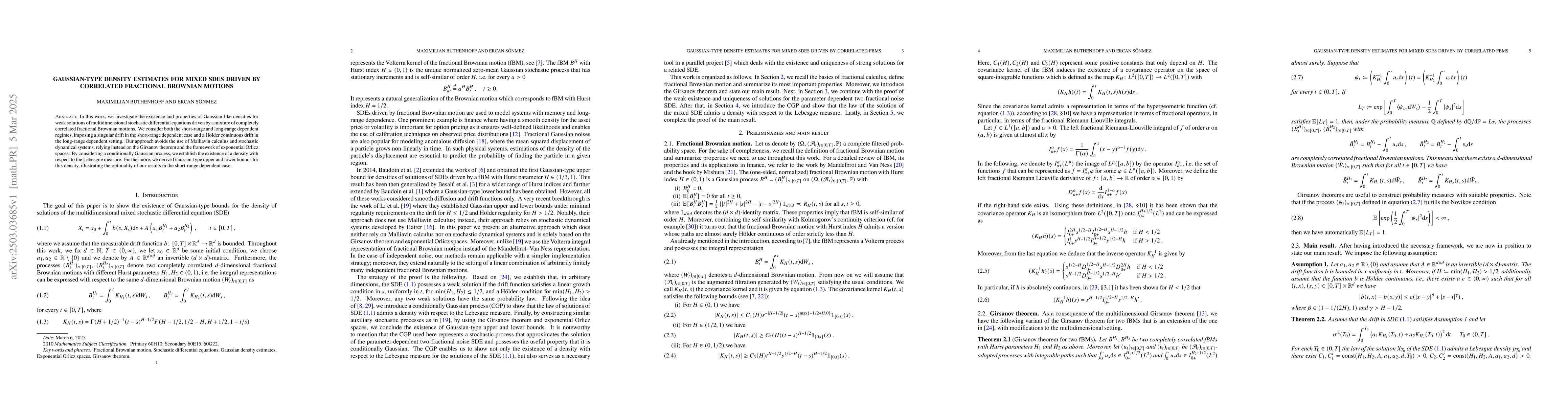 The novelty of this work lies in its approach, which avoids Malliavin calculus and stochastic dynamical systems, relying instead on the Girsanov theorem and exponential Orlicz spaces to establish Gaussian-type density estimates for mixed SDEs driven by correlated fractional Brownian motions.