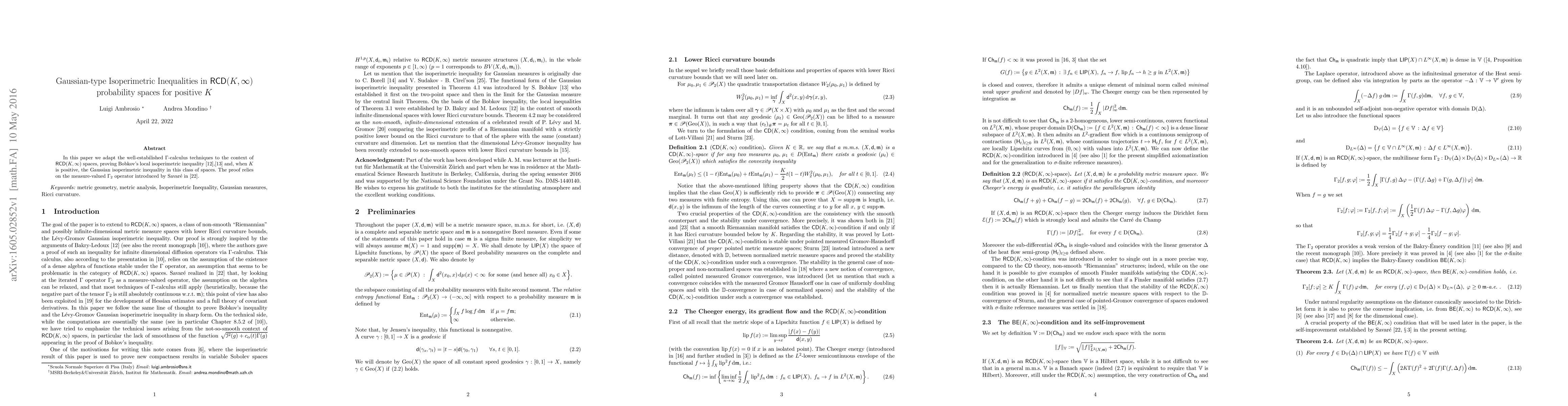This research adapts $Gamma$-calculus techniques to $RCD(K,infty)$ spaces, proving Bobkov's local isoperimetric inequality and the Gaussian isoperimetric inequality for positive $K$. The proof utilizes Savaré's measure-valued $Gamma_2$ operator.