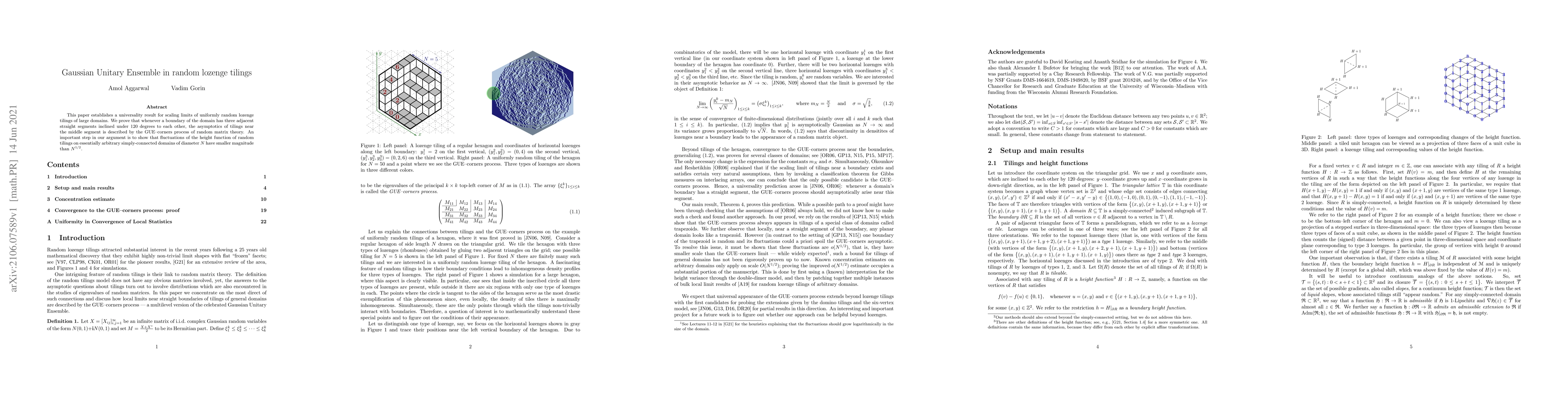 The paper provides a rigorous proof of convergence to the GUE-corners process for lozenge tilings under specific boundary conditions, establishing a link between random tiling models and random matrix theory.