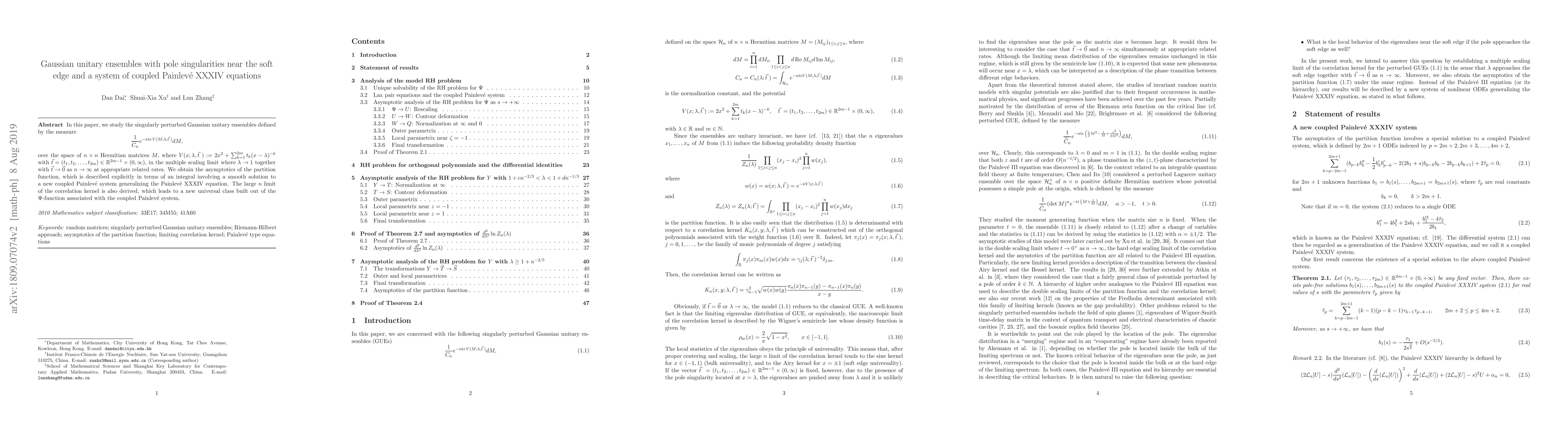 This paper investigates singularly perturbed Gaussian unitary ensembles with pole singularities near the soft edge, deriving the asymptotics of the partition function and correlation kernel. The results are expressed in terms of a new coupled Painlevé XXXIV system and a universal class built from the associated $\Psi$-function.