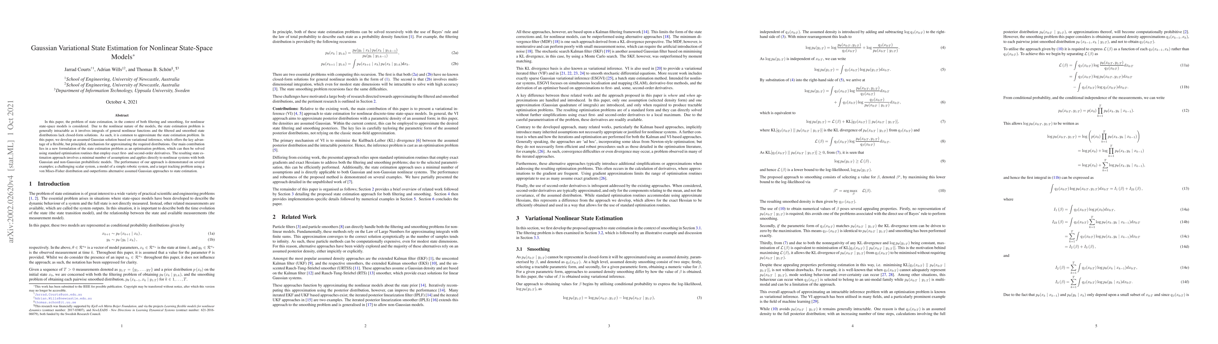 This paper proposes a Gaussian variational inference method for state estimation in nonlinear state-space models, reformulating the problem as an optimization task solvable via standard routines. The approach demonstrates superior performance over alternative methods in various examples, including a scalar system, robotic model, and target tracking.