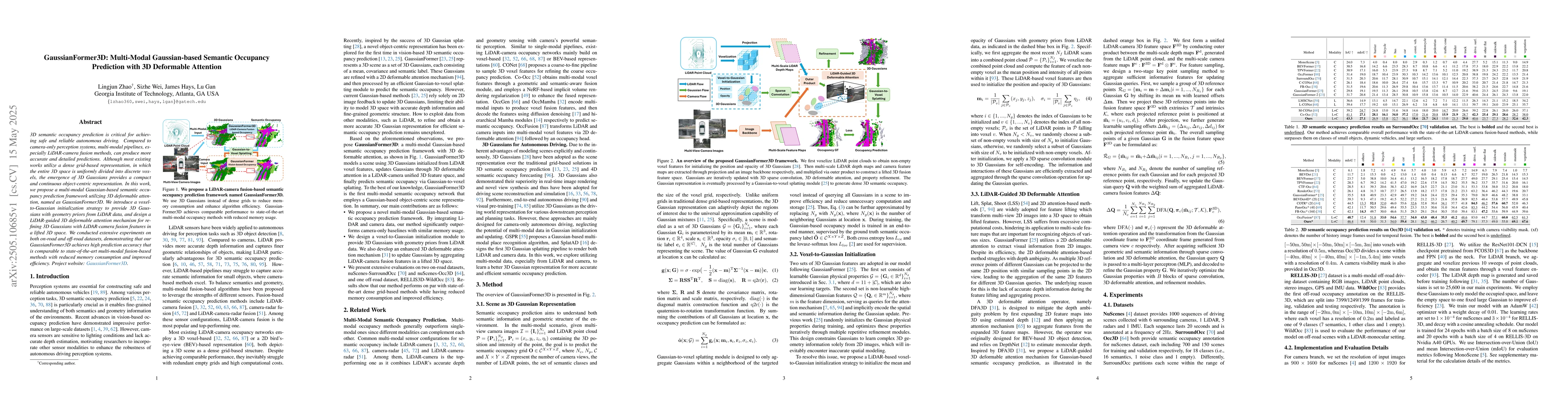 This paper proposes a 3D Gaussian-based semantic occupancy prediction framework called GaussianFormer3D, which uses LiDAR-guided attention to improve accuracy on autonomous driving tasks with reduced memory consumption.