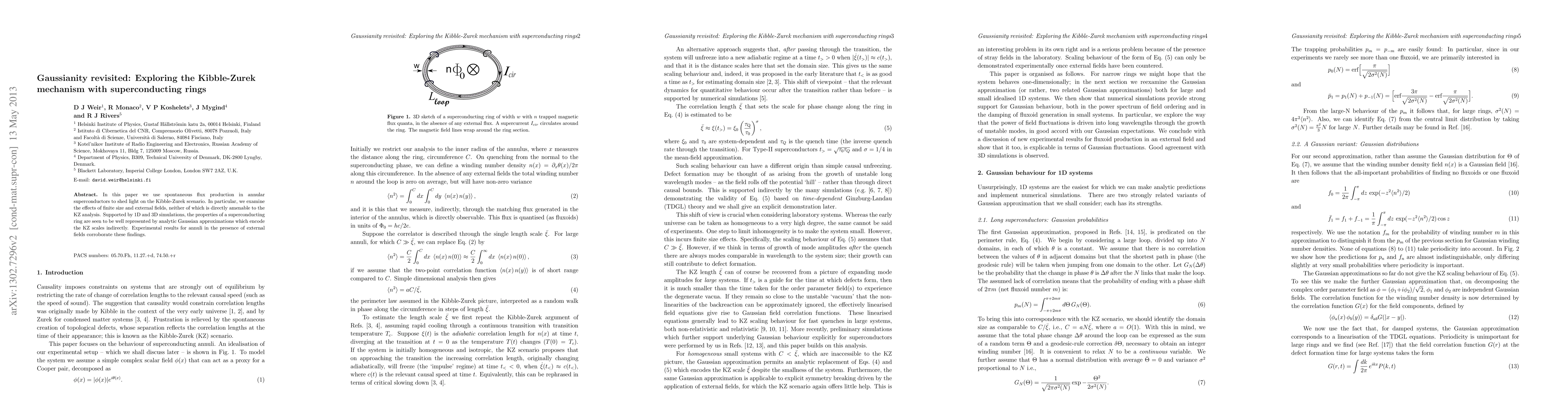 In this paper we use spontaneous flux production in annular superconductors to shed light on the Kibble-Zurek scenario. In particular, we examine the effects of finite size and external fields, neither of which is directly amenable to the KZ analysis. Supported by 1D and 3D simulations, the properties of a superconducting ring are seen to be well represented by analytic Gaussian approximations which encode the KZ scales indirectly. Experimental results for annuli in the presence of external fields corroborate these findings.