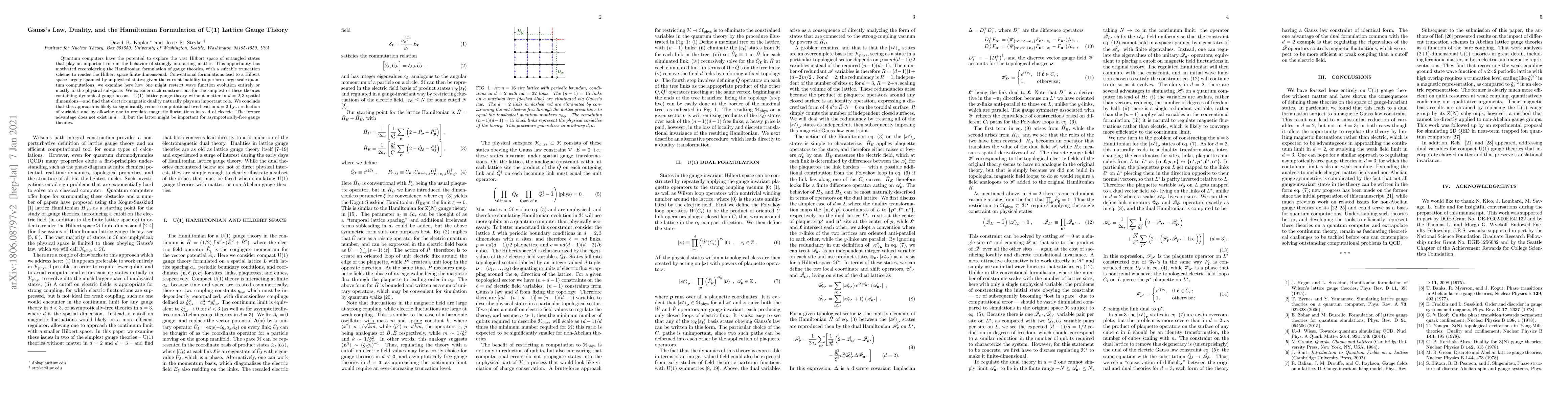 Quantum computers have the potential to explore the vast Hilbert space of entangled states that play an important role in the behavior of strongly interacting matter. This opportunity motivates reconsidering the Hamiltonian formulation of gauge theories, with a suitable truncation scheme to render the Hilbert space finite-dimensional. Conventional formulations lead to a Hilbert space largely spanned by unphysical states; given the current inability to perform large scale quantum computations, we examine here how one might restrict wave function evolution entirely or mostly to the physical subspace. We consider such constructions for the simplest of these theories containing dynamical gauge bosons -- U(1) lattice gauge theory without matter in $d=2,3$ spatial dimensions -- and find that electric-magnetic duality naturally plays an important role. We conclude that this approach is likely to significantly reduce computational overhead in $d=2$ by a reduction of variables and by allowing one to regulate magnetic fluctuations instead of electric. The former advantage does not exist in $d=3$, but the latter might be important for asymptotically-free gauge theories.