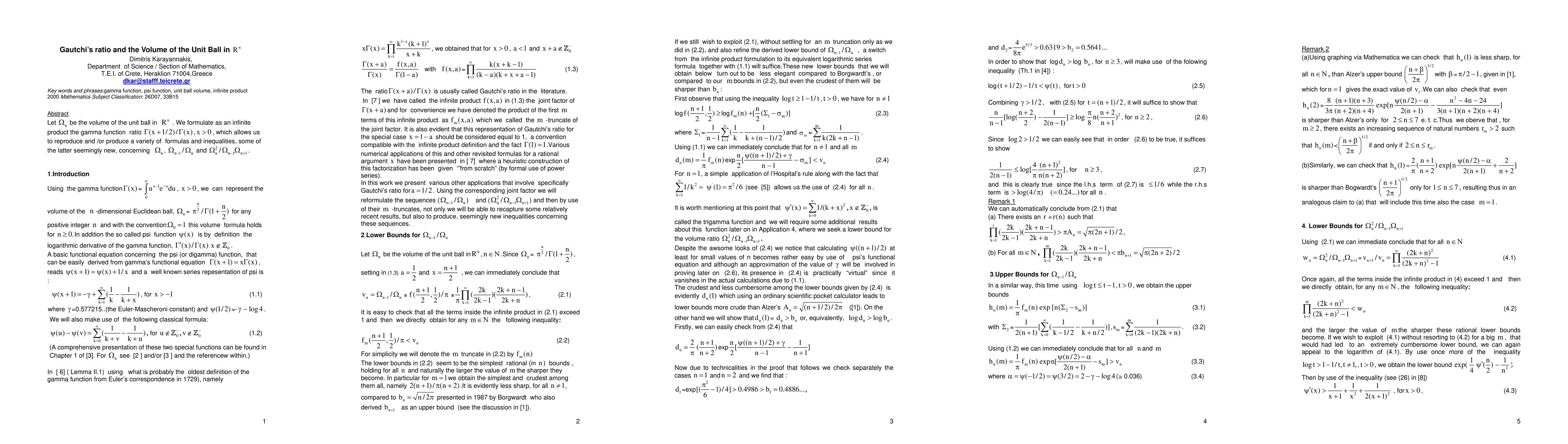 This paper explores the relationship between Gautchi's ratio of gamma functions and the volume of the unit ball in n-dimensional space, deriving new formulas and inequalities for the volume ratios and products. The infinite product formulation of the gamma function ratio provides a novel approach to understanding these geometric properties.