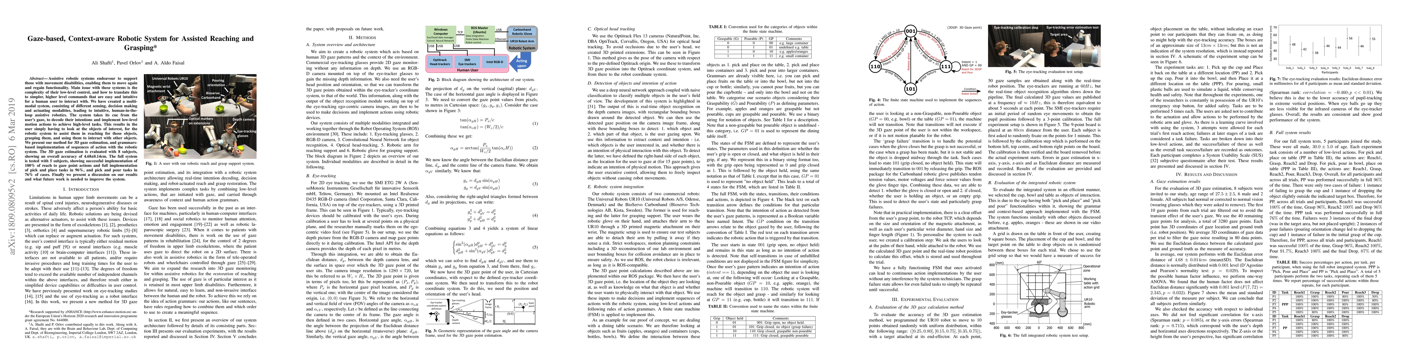 This paper presents a gaze-based, context-aware robotic system that assists users with movement disabilities in reaching and grasping objects by interpreting their gaze intentions. The system achieves high-level tasks through a combination of 3D gaze estimation and grammars-based action sequences, demonstrating 100% success in reaching tasks and 96% in pick and place tasks.