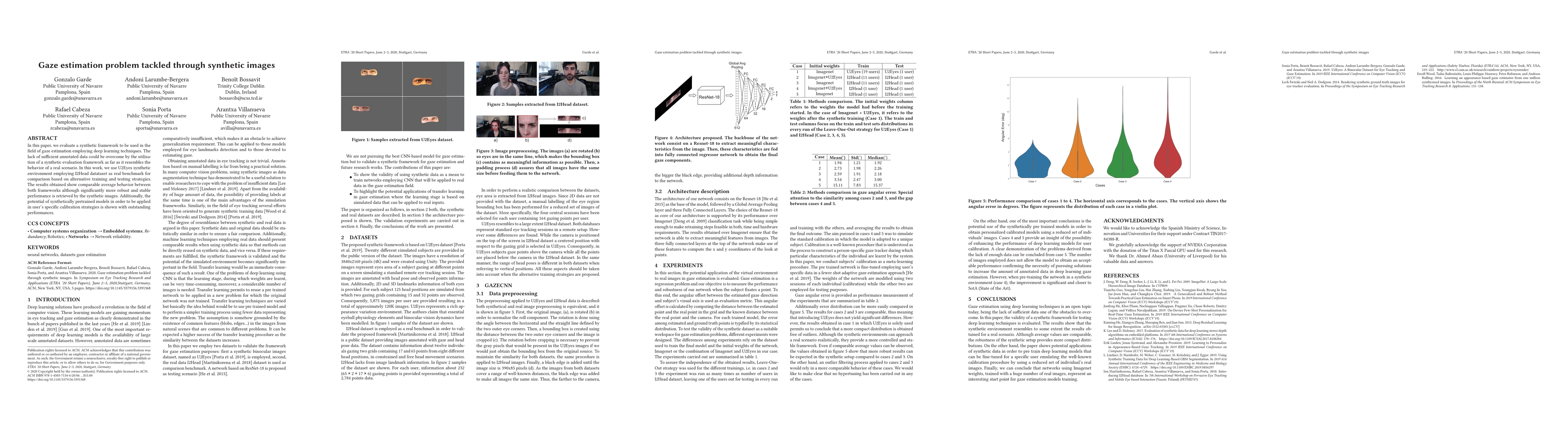 In this paper, we evaluate a synthetic framework to be used in the field of gaze estimation employing deep learning techniques. The lack of sufficient annotated data could be overcome by the utilization of a synthetic evaluation framework as far as it resembles the behavior of a real scenario. In this work, we use U2Eyes synthetic environment employing I2Head datataset as real benchmark for comparison based on alternative training and testing strategies. The results obtained show comparable average behavior between both frameworks although significantly more robust and stable performance is retrieved by the synthetic images. Additionally, the potential of synthetically pretrained models in order to be applied in user's specific calibration strategies is shown with outstanding performances.