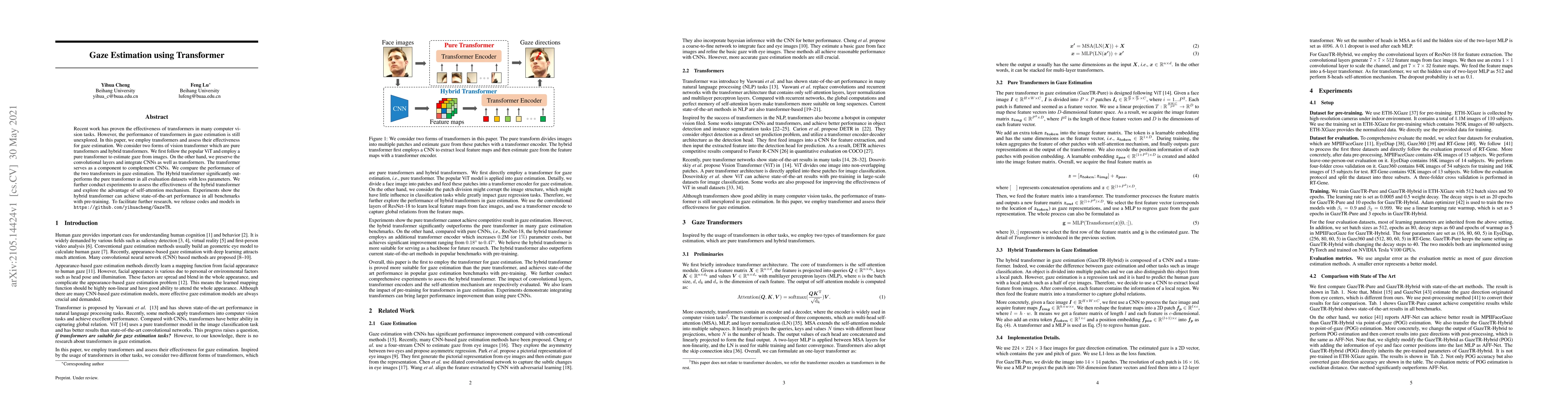 This paper investigates the use of transformers for gaze estimation, comparing pure vision transformers and hybrid transformers that combine CNNs and transformers. The hybrid model outperforms the pure transformer, achieving state-of-the-art performance with fewer parameters, demonstrating the benefits of the self-attention mechanism.