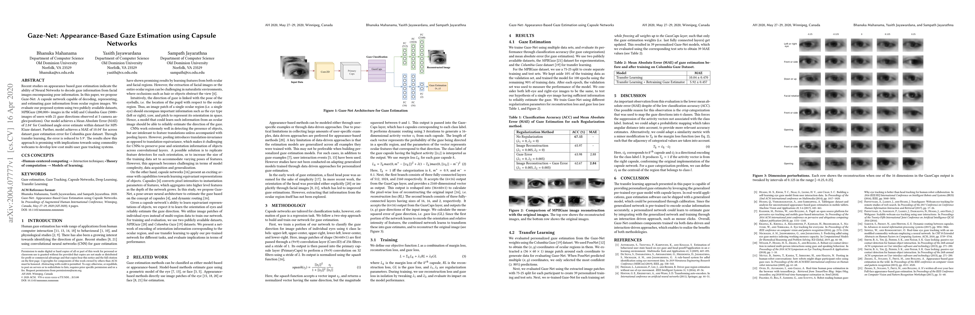 Gaze-Net employs capsule networks to estimate gaze from facial images, achieving a Mean Absolute Error of 2.84° on the MPIIGaze dataset and 10.04° on the Columbia Gaze dataset, with transfer learning reducing the error to 5.9°, demonstrating potential for low-cost multi-user gaze tracking.