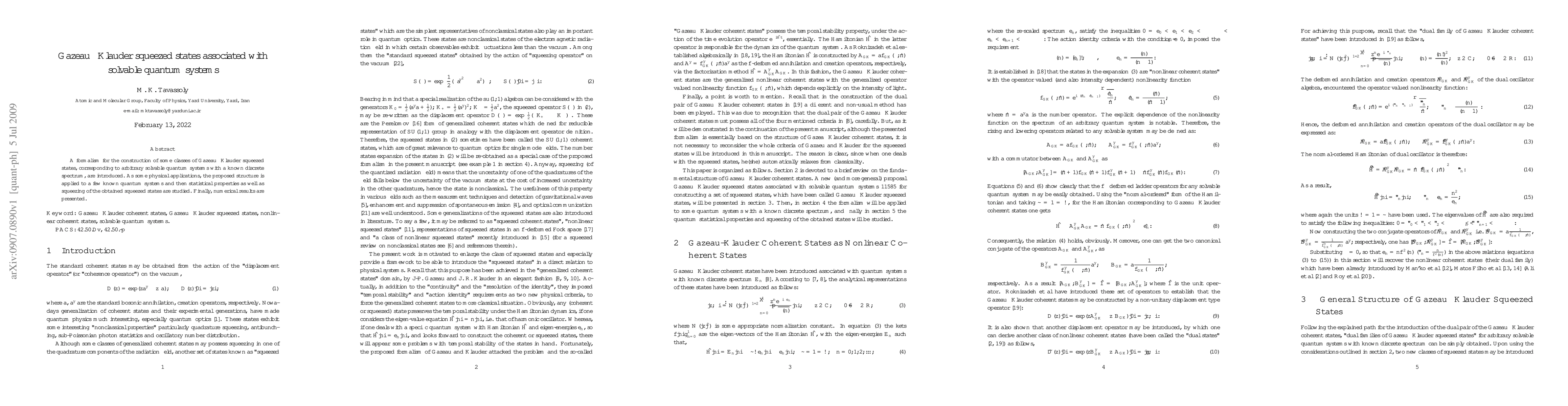 This paper introduces a formalism for constructing Gazeau-Klauder squeezed states for solvable quantum systems with discrete spectra. It applies this structure to several known quantum systems, studying their statistical properties and squeezing, and presents numerical results.